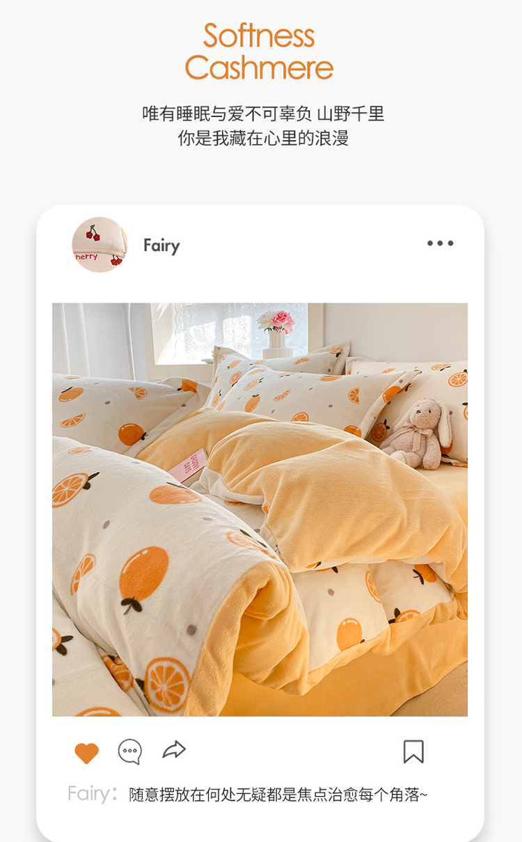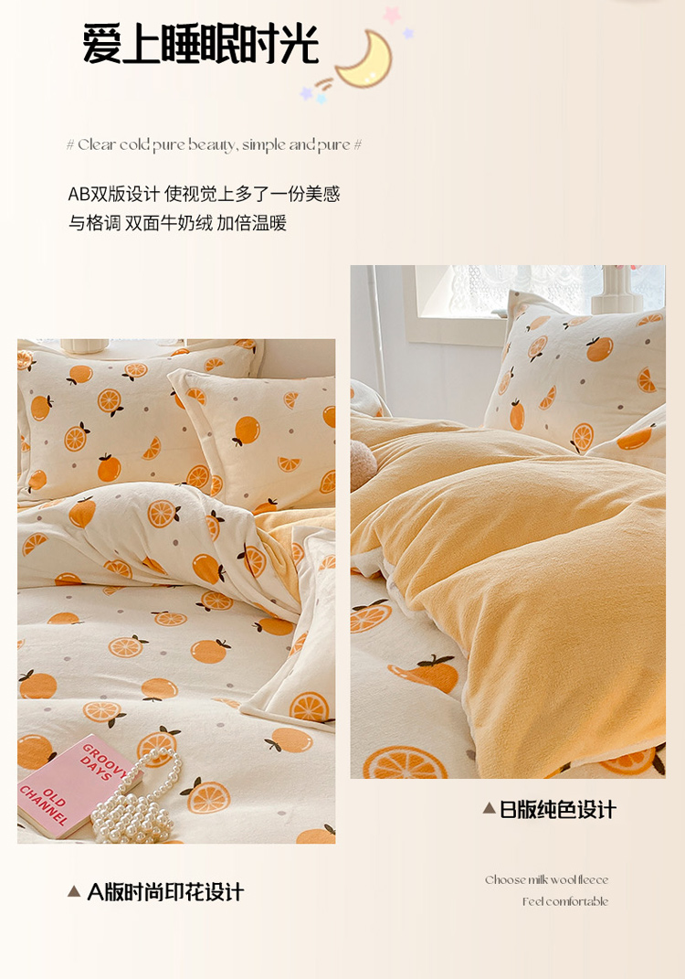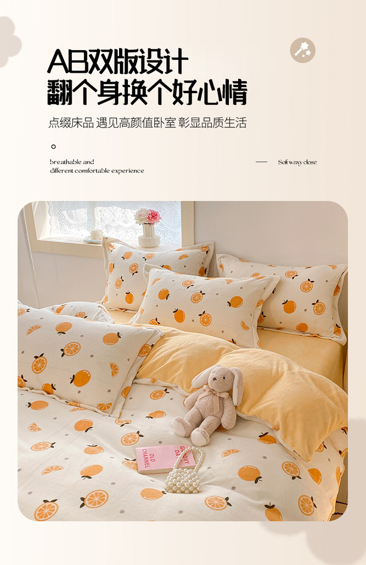 沐慕 2022新款牛奶绒四件套 小橙子