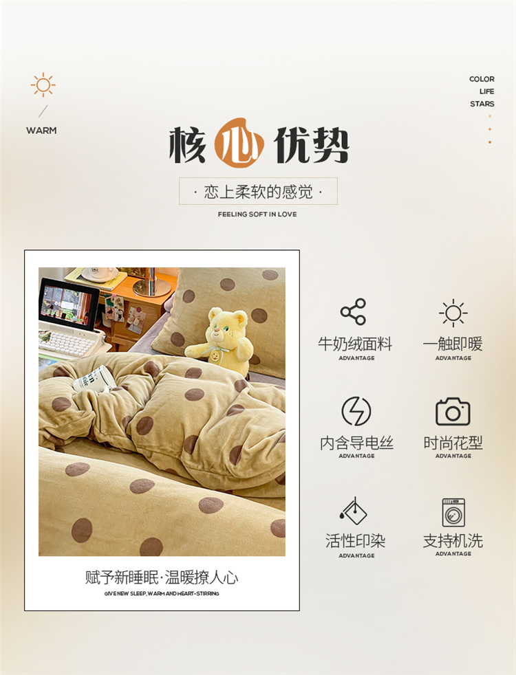 商品名称:桃子 新款ins奶油仙女波波加厚牛奶绒系列四件套 仙女波波-奶咖