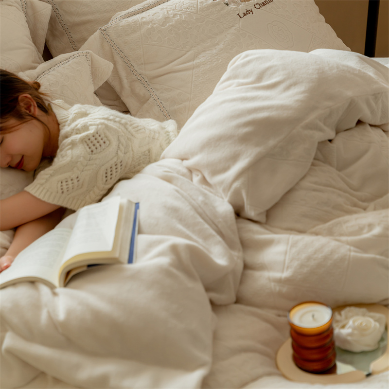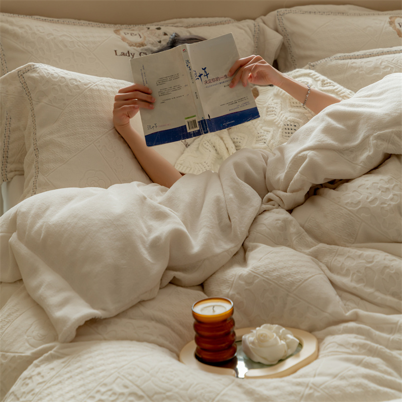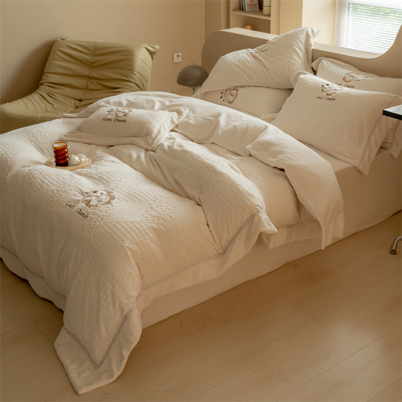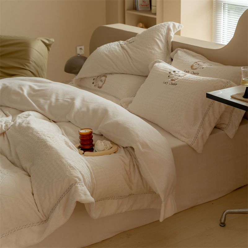 馨蕊家居 2022新秋冬刺绣轻奢煦暖绒四件套-莫奈-元气白桃