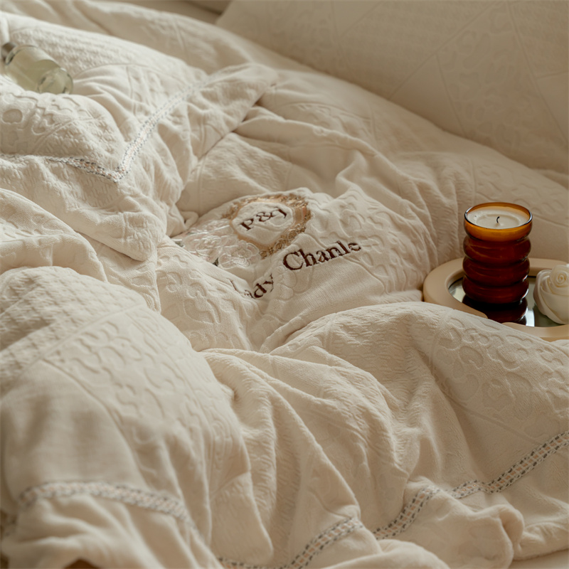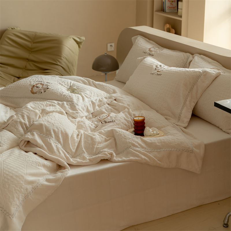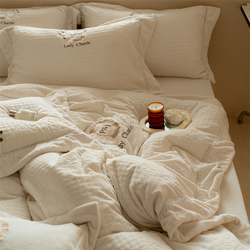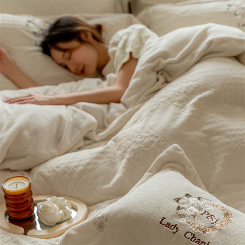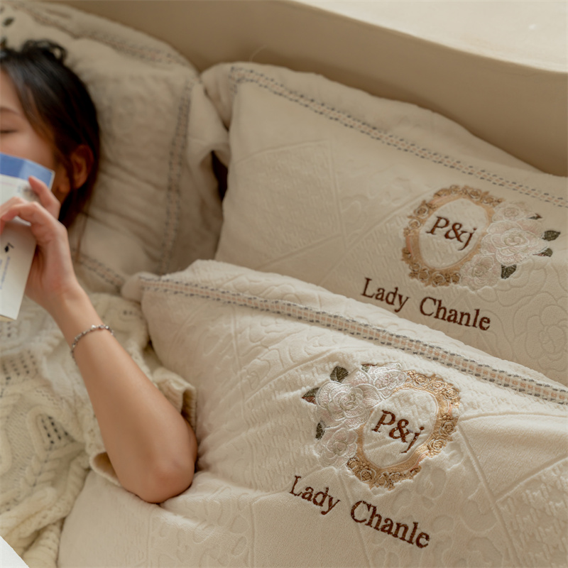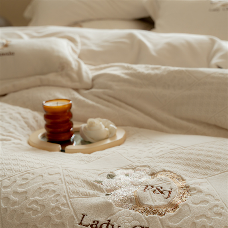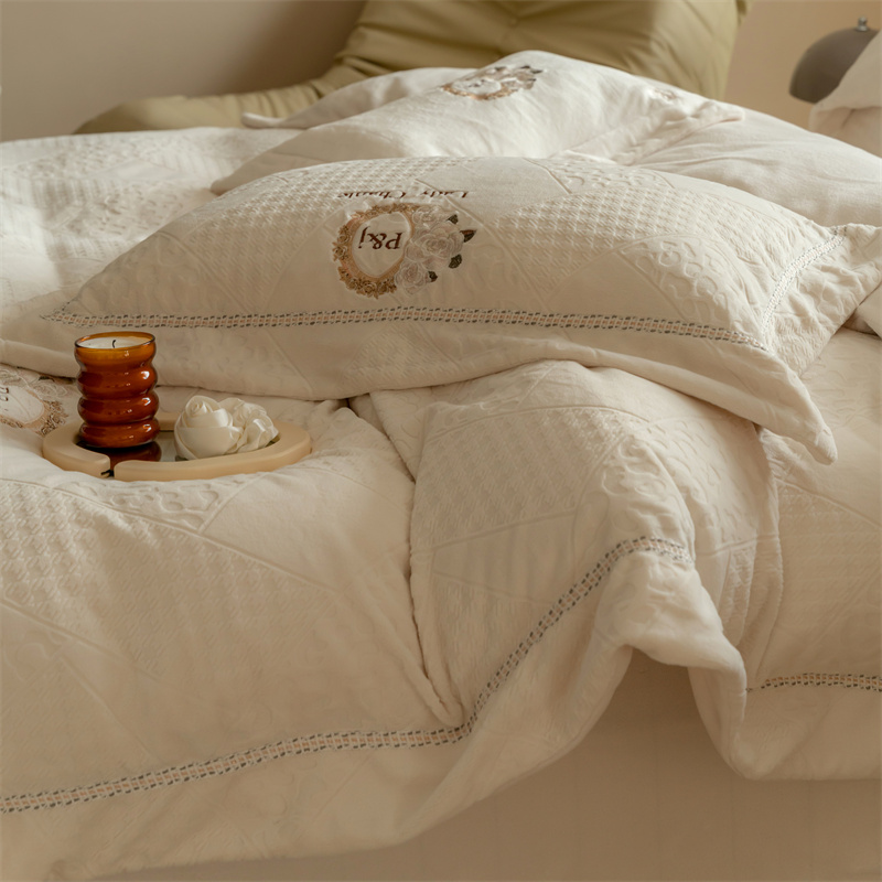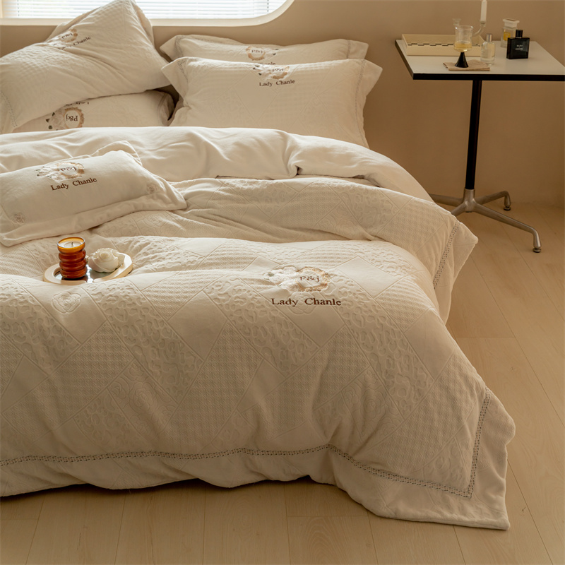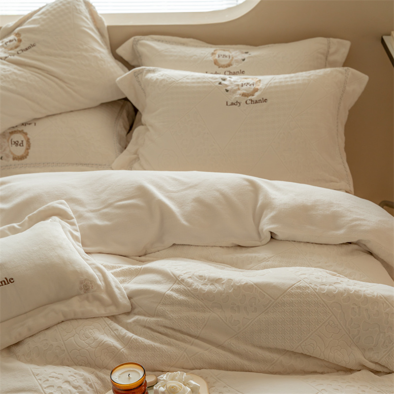 商品名称:馨蕊家居 2022新秋冬刺绣轻奢煦暖绒四件套-莫奈-元气白桃