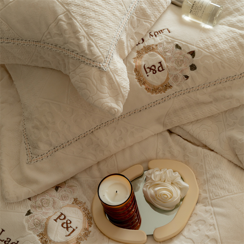 (总)馨蕊家居 2025新款意大利进口高精密刺绣拼角工艺秋冬法式高奢雪貂绒系列-绒雪芙 会员-10【券后控价358/378】,绒雪芙-奶咖,绒雪芙-蔷薇粉,绒雪芙-婉若紫,绒雪芙-月光白