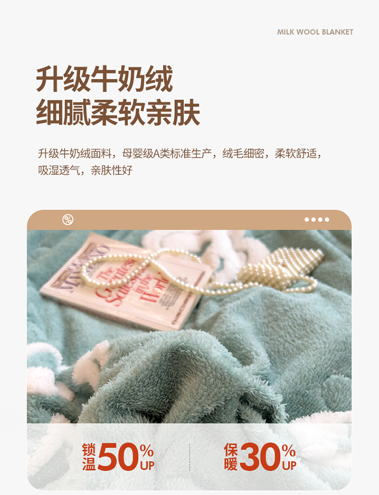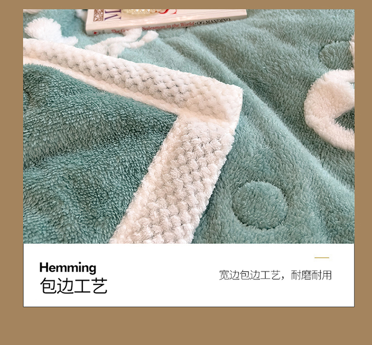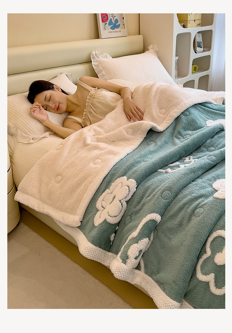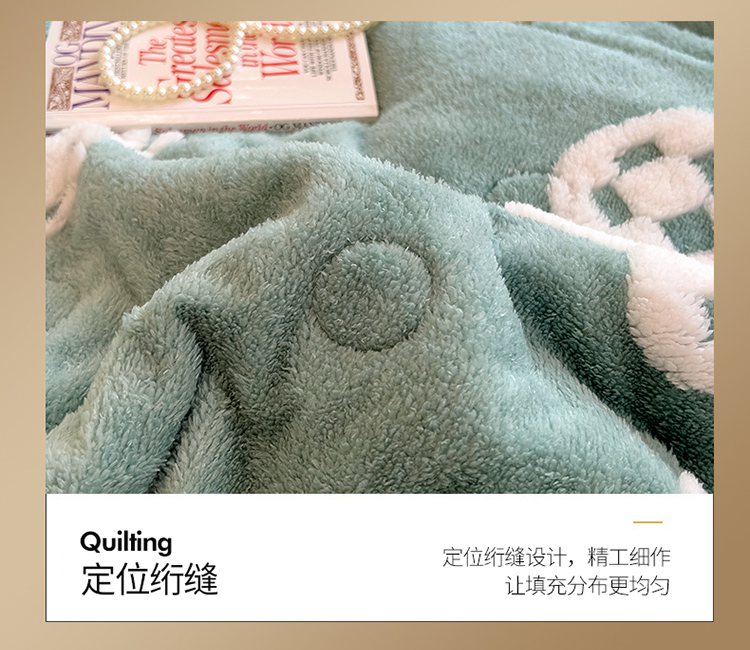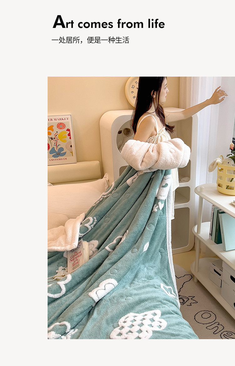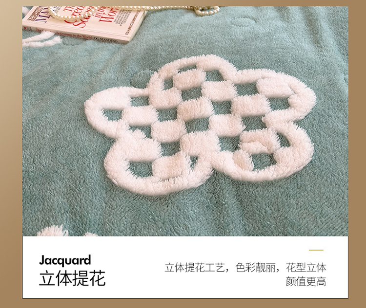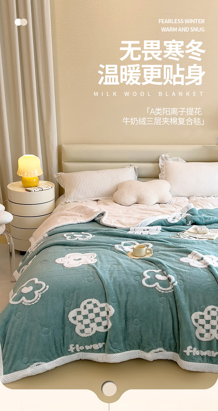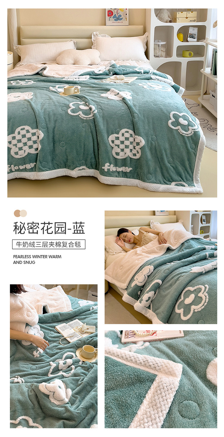 慕木22新款保暖A类阳离子提花牛奶绒三层夹棉复合毯秘密花园蓝