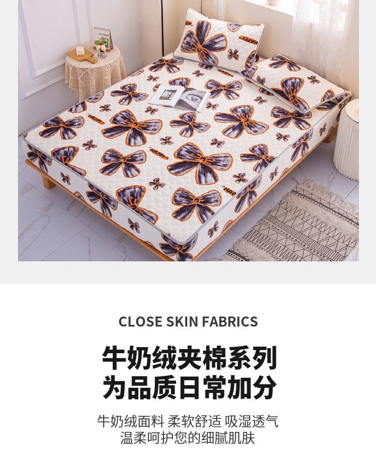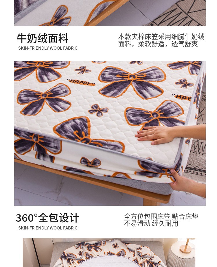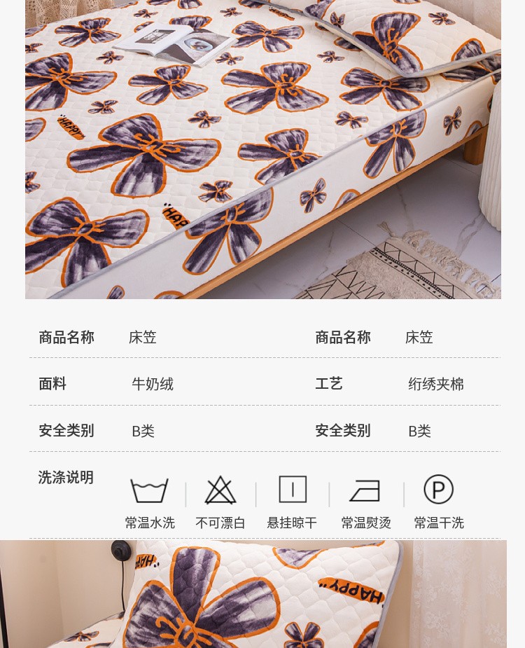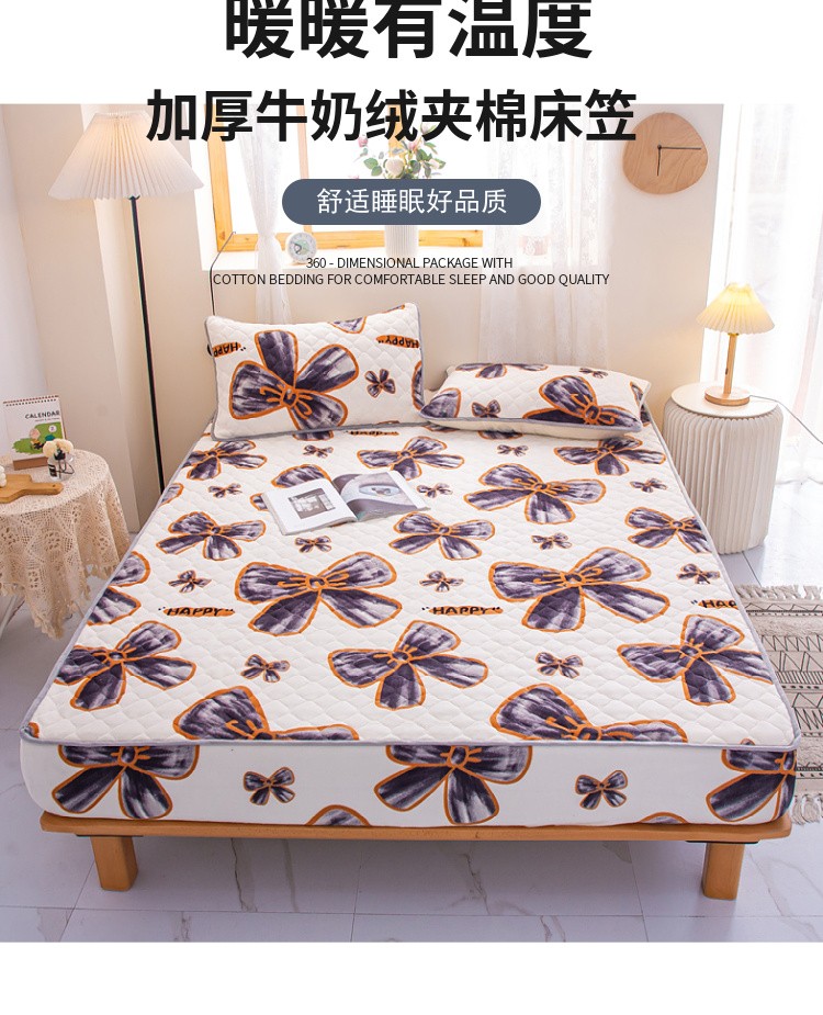 • 91家纺网 家纺一手货源 找家纺 小虾米 2022新款大床牛奶绒夹棉床笠 蝶恋花