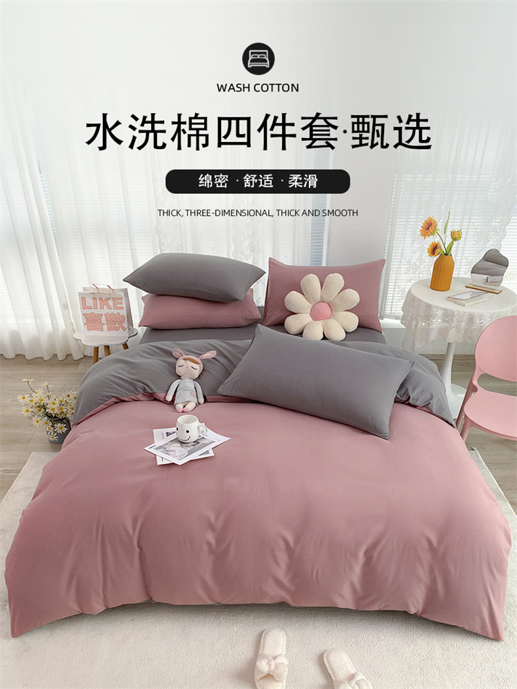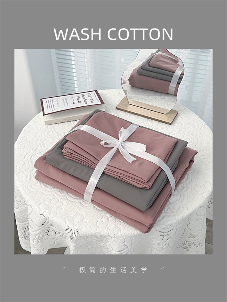 当前位置: 91家纺网 > 商品网购 > 床品套件 > 四件套 > 水洗棉四件套 > 家贝爱 2022新款普通款无印风轻奢水洗棉四件套 豆沙灰