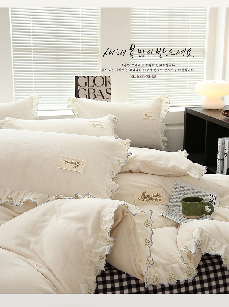 当前位置: 91家纺网 > 商品网购 > 床品套件 > 四件套 > 牛奶绒四件套 > 婳庭 2023小雏菊花边刺绣牛奶绒四件套 小雏菊-本白