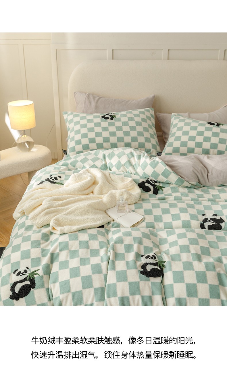 2022锦芙牛奶绒250克全消光绣花四件套,情绪熊猫-白竹