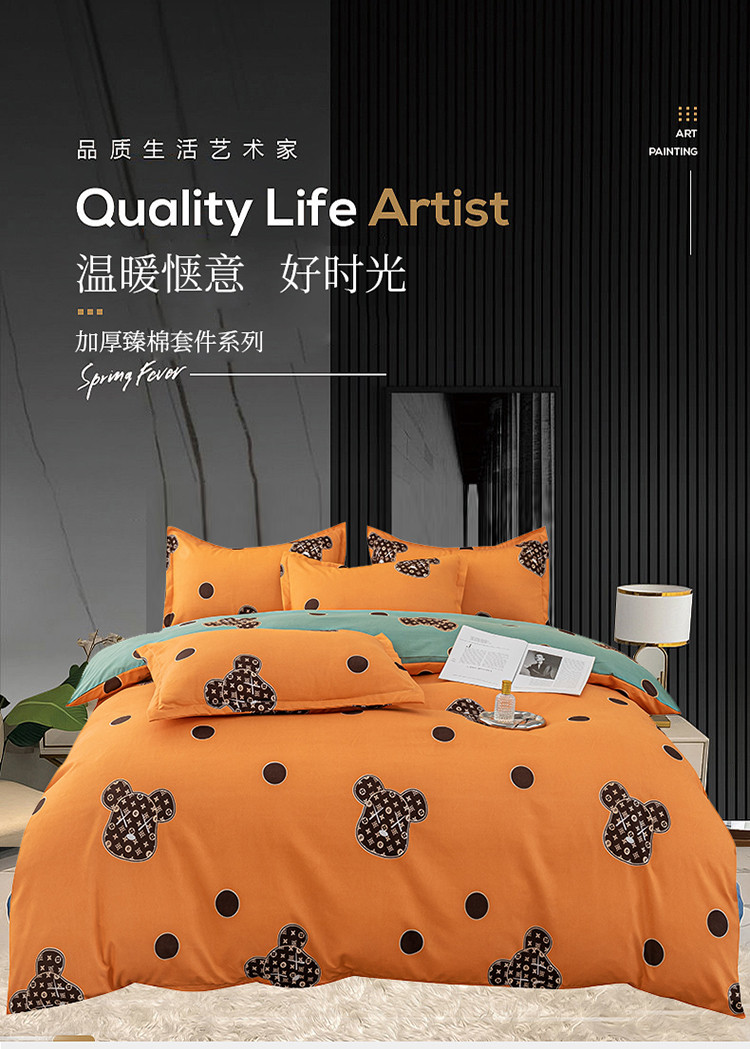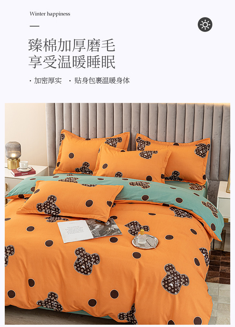 商品名称:棠颂 2023新款高克重加厚植物羊绒斜纹磨毛单被套 布丁熊
