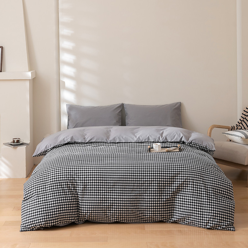 商品名称:柠馨 2023新款全棉色织水洗棉单品被套 黑白格