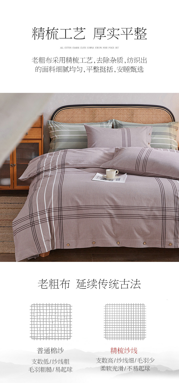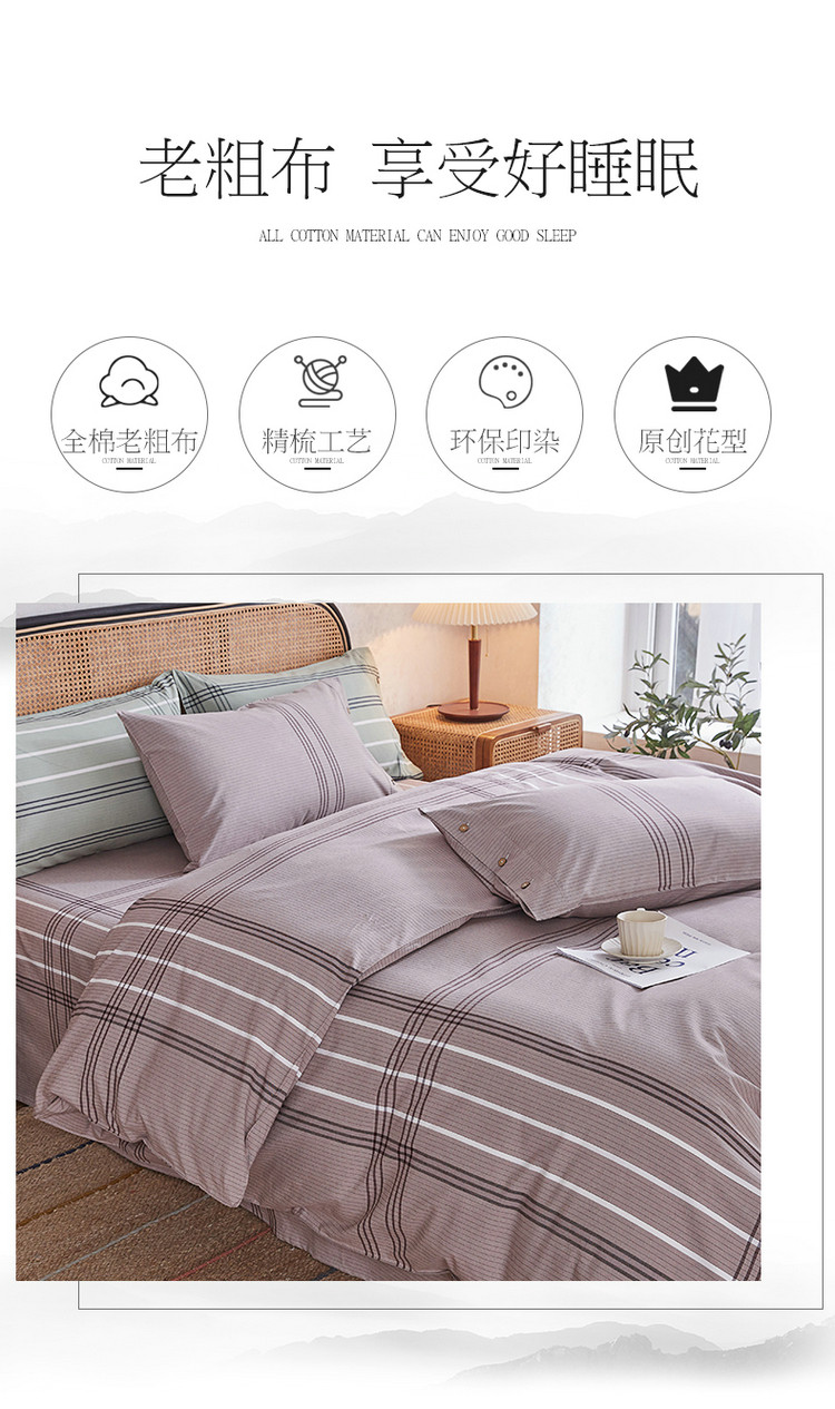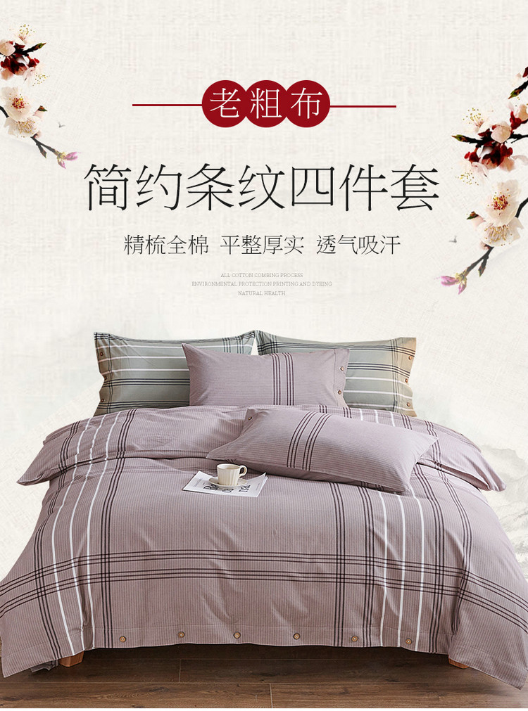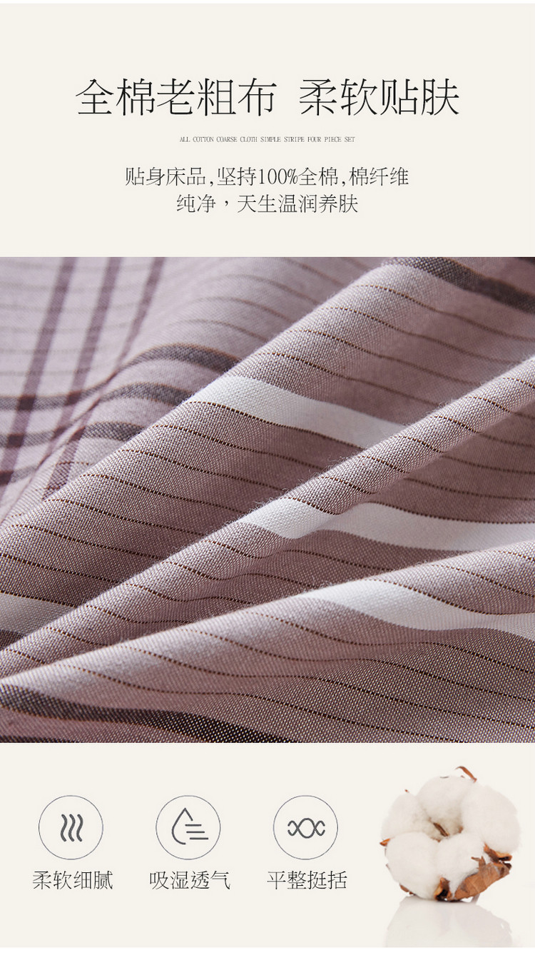 商品名称:棉乐町 2025新款32支精梳棉老粗布四件套 大格-咖