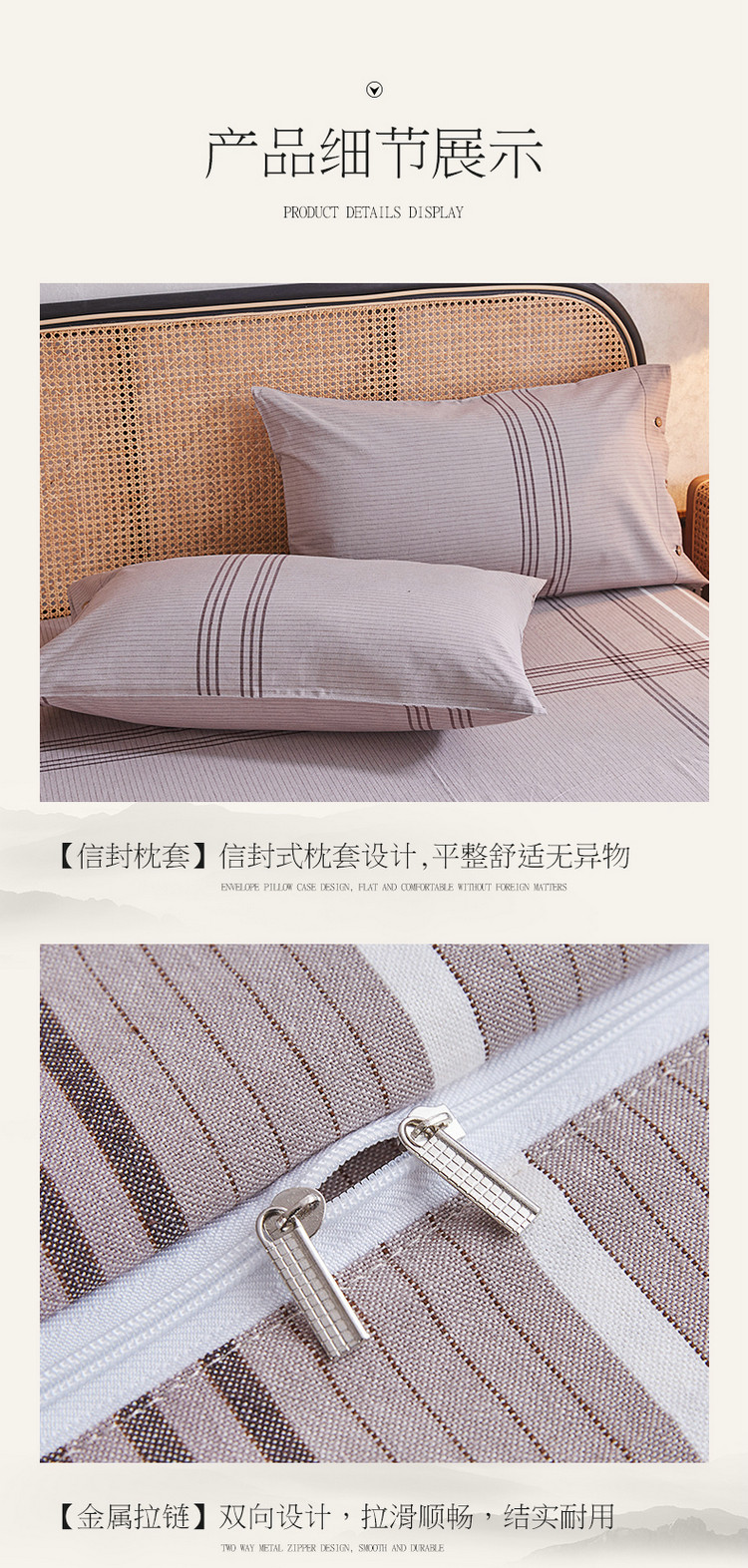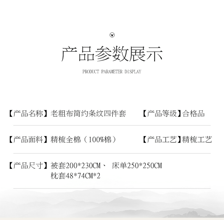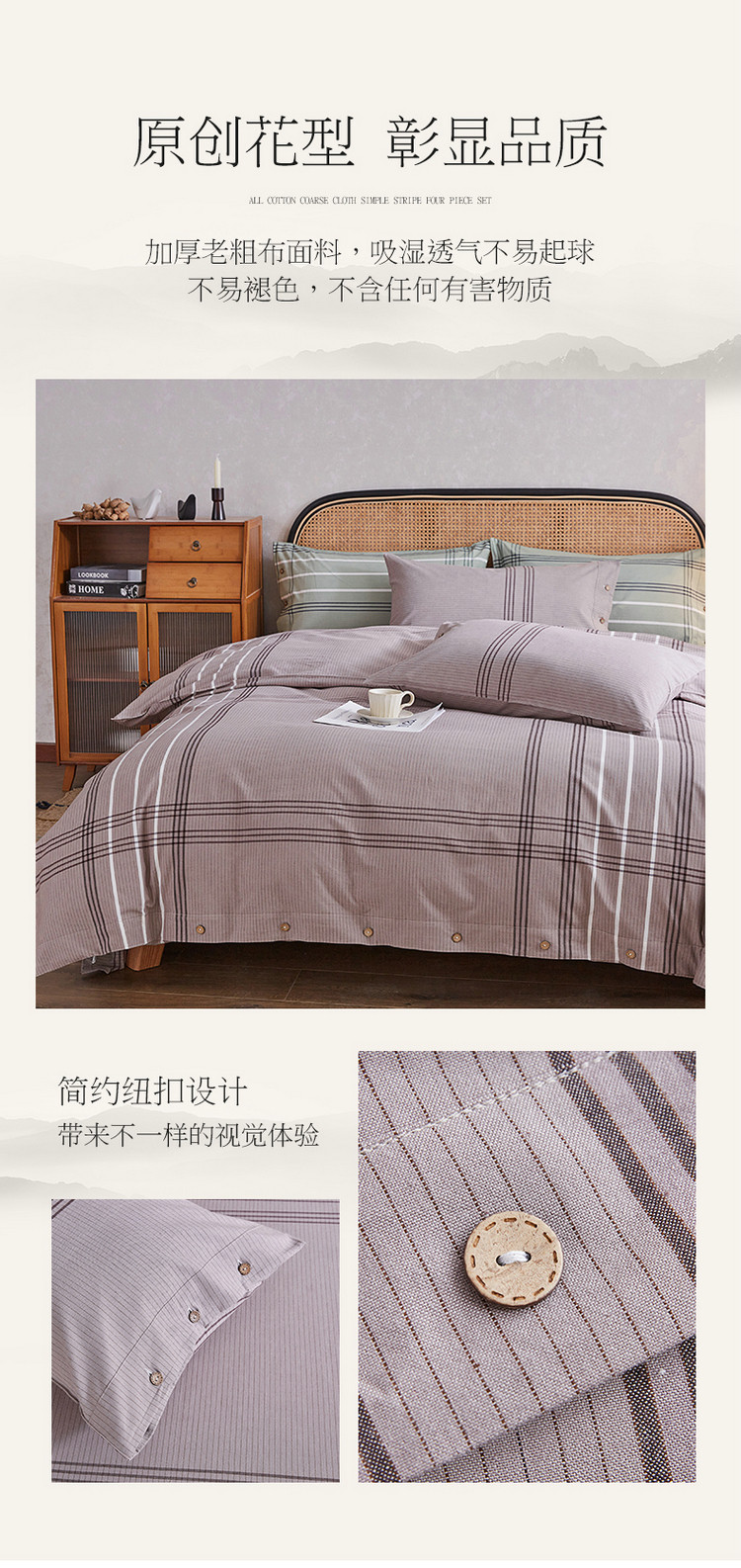 商品名称:棉乐町 2025新款32支精梳棉老粗布四件套 大格-咖