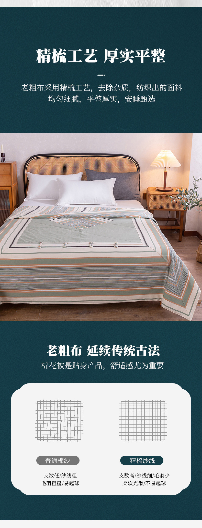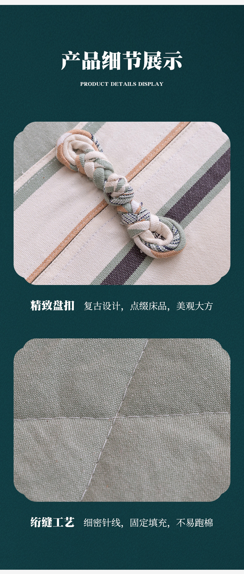商品名称:棉乐町 2025新款全棉老粗布棉花夏被 复古盘扣-绿