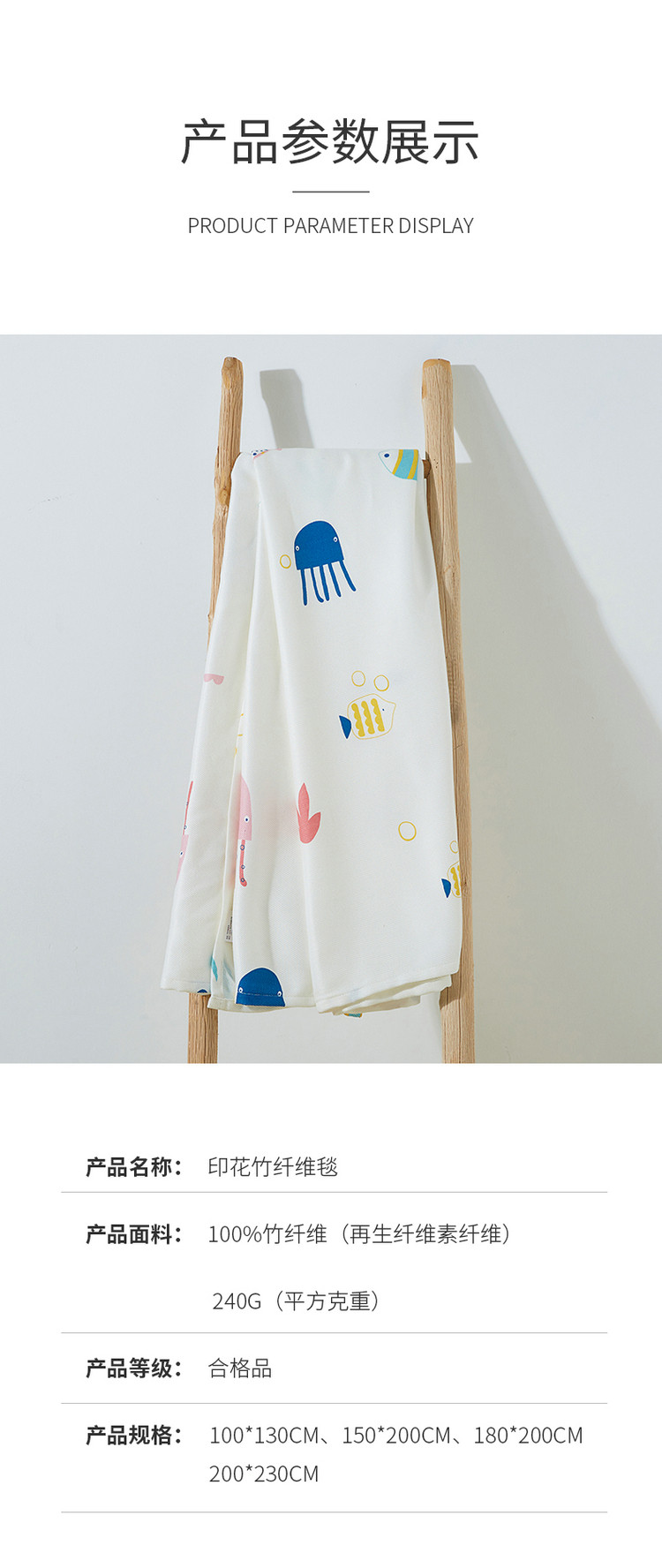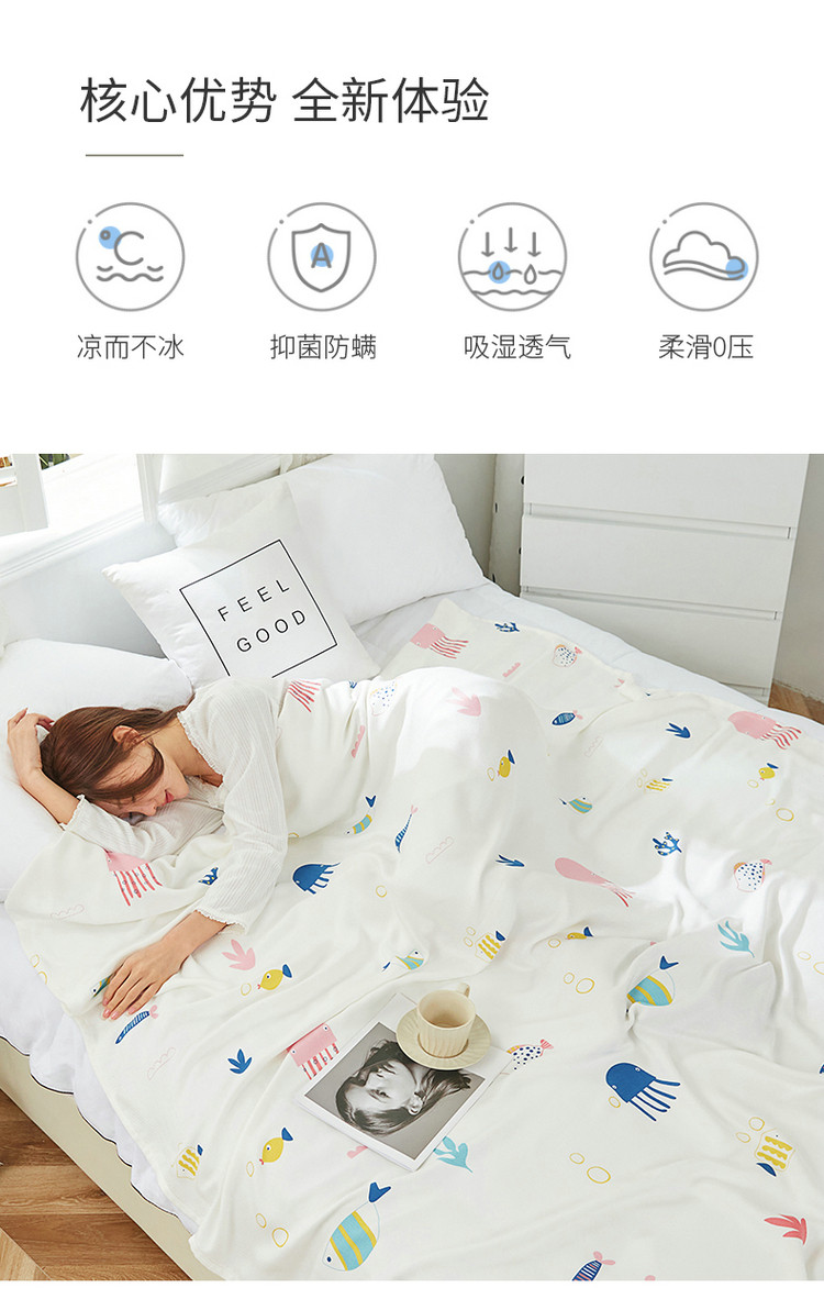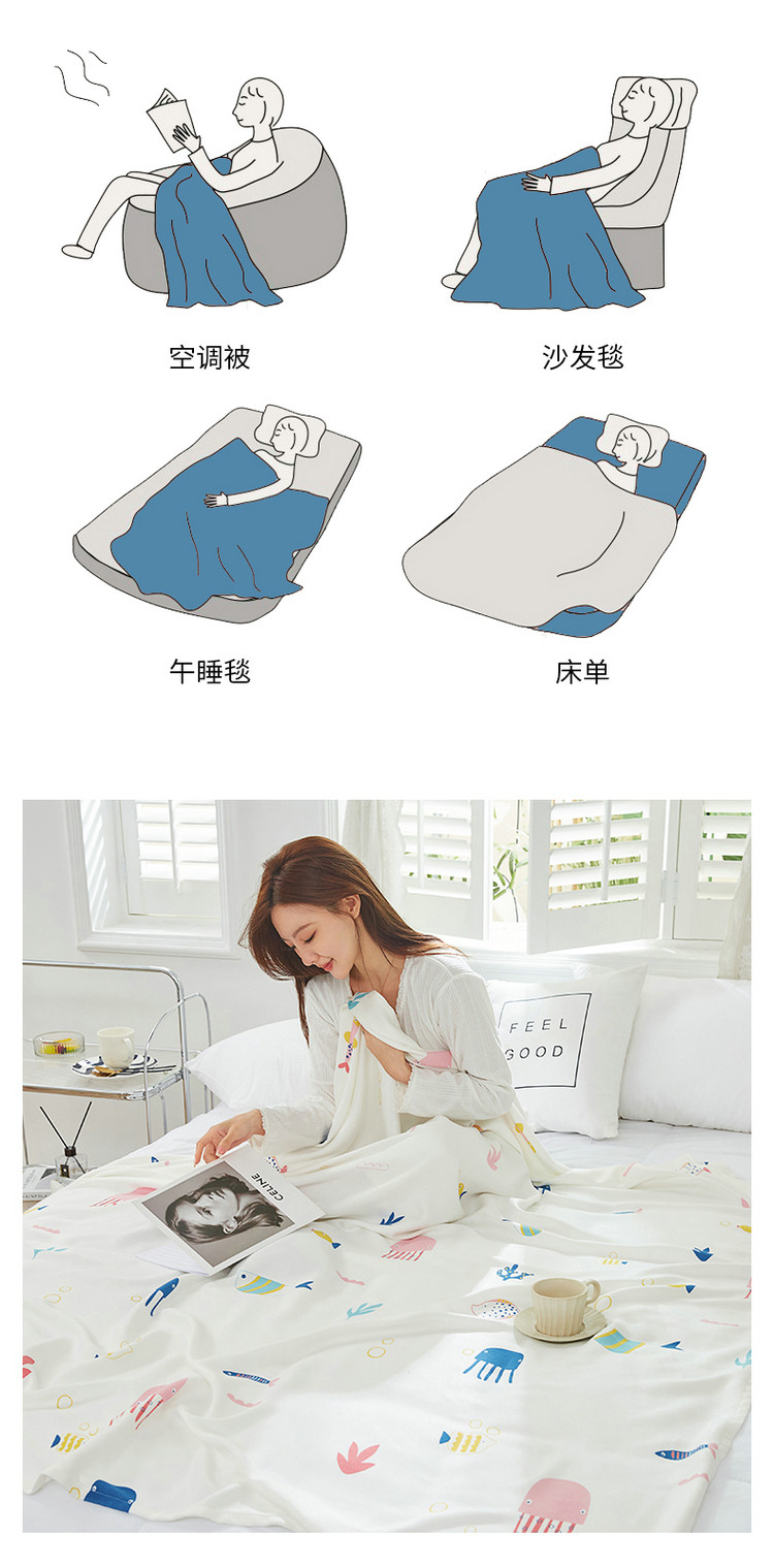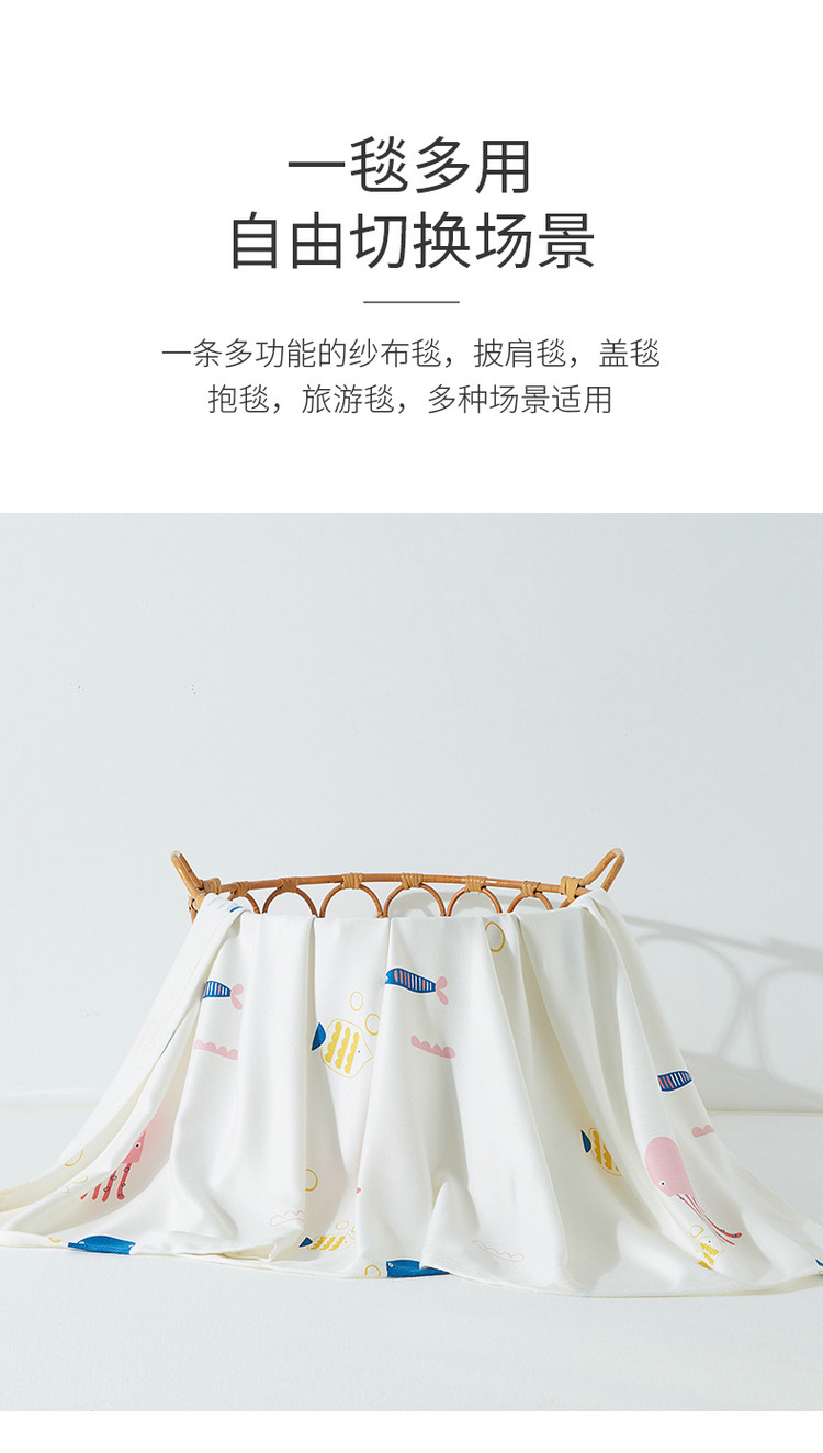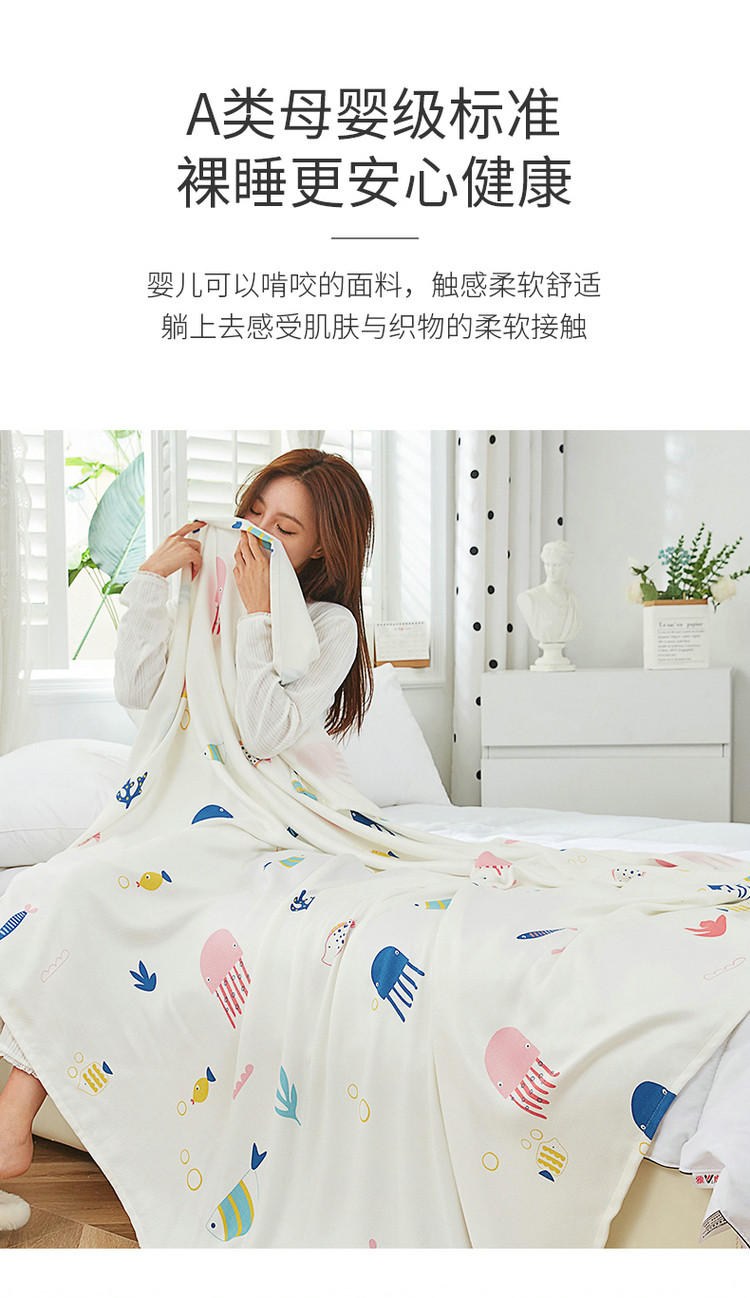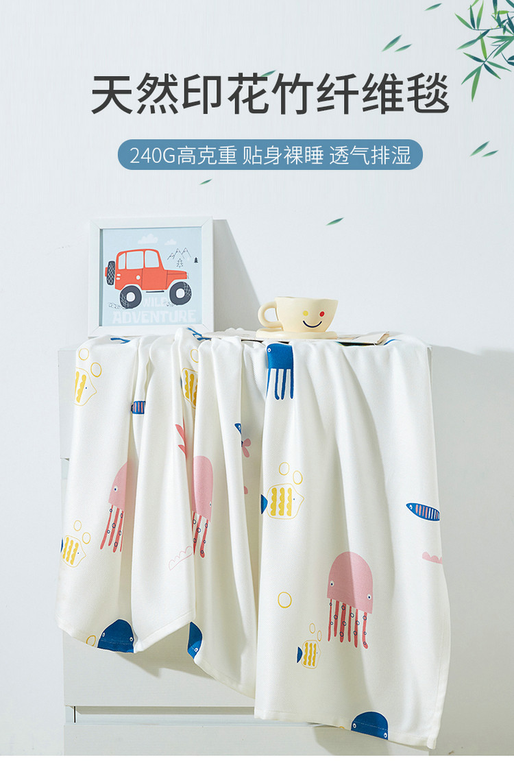 商品名称:棉乐町 2025新款印花竹纤维盖毯 海底世界