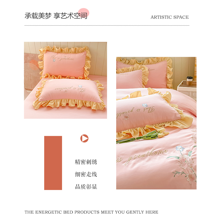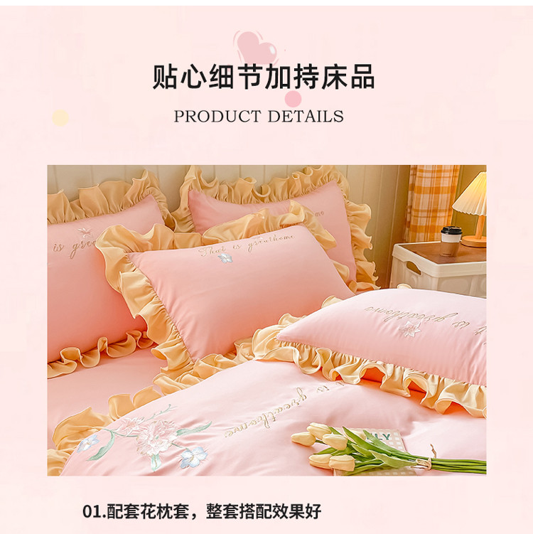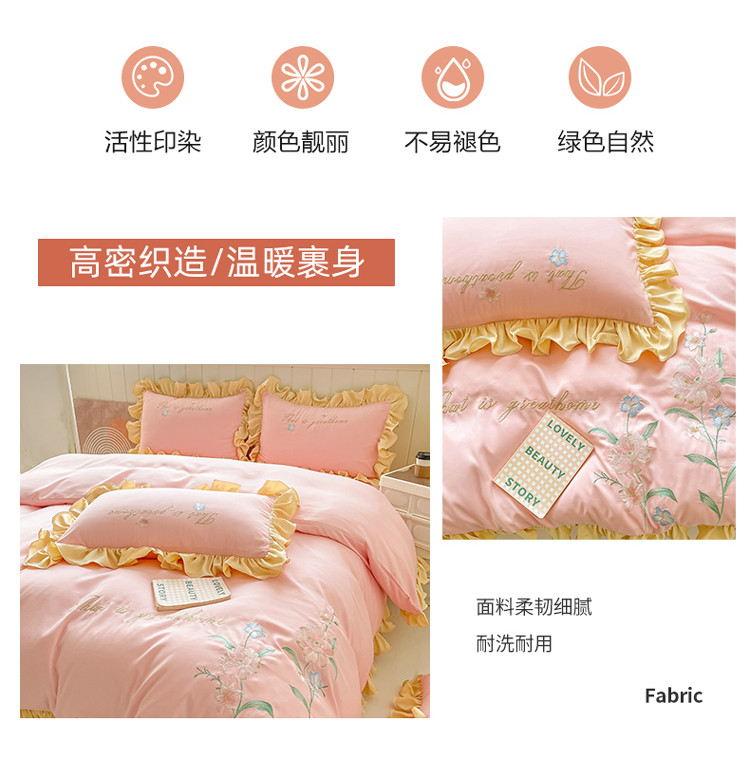 商品名称:富盛 2024新款水洗亲肤棉刺绣四件套公主风四件套-春暖花开 粉玉