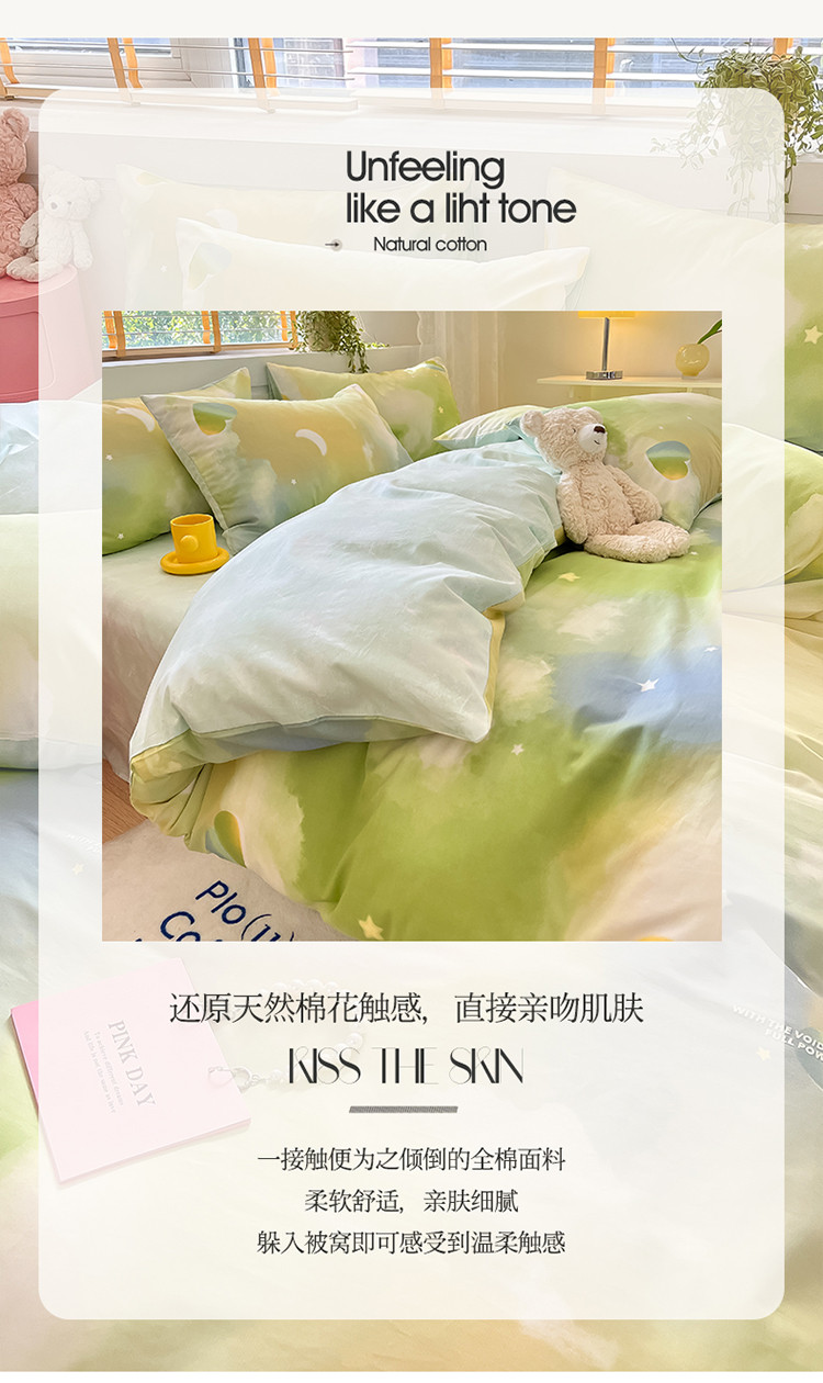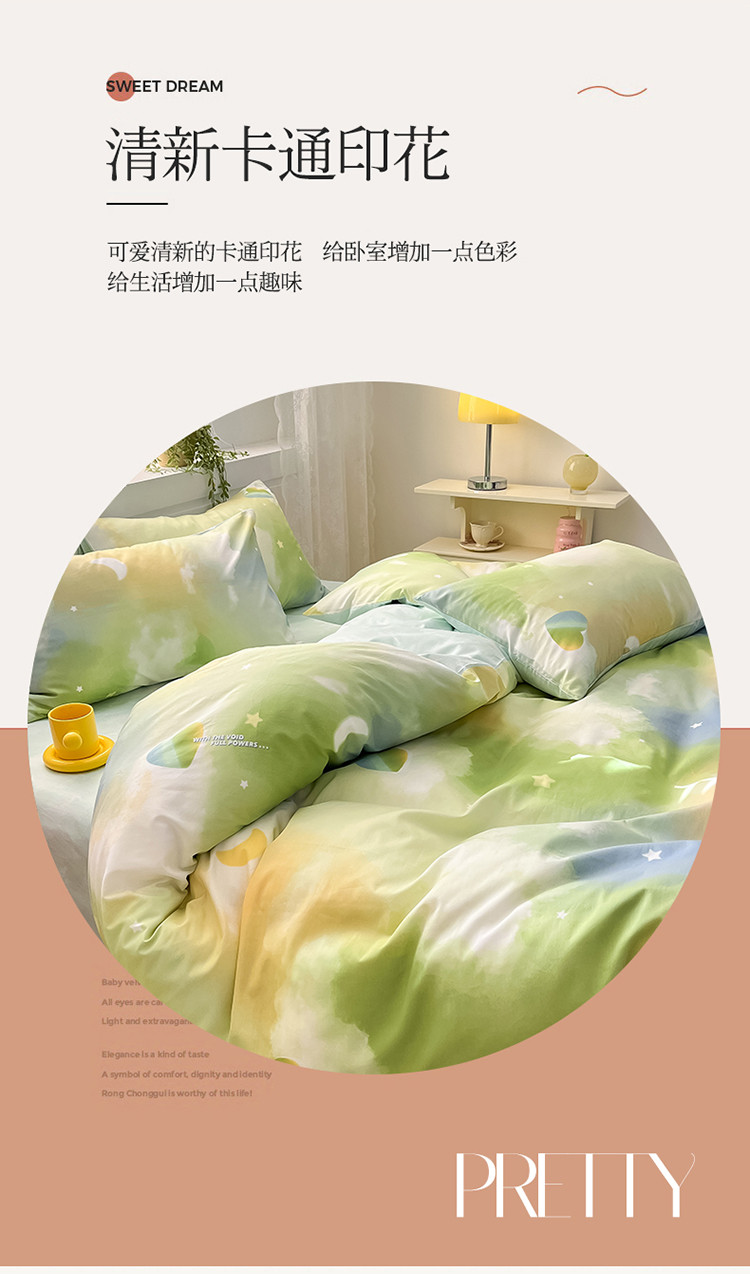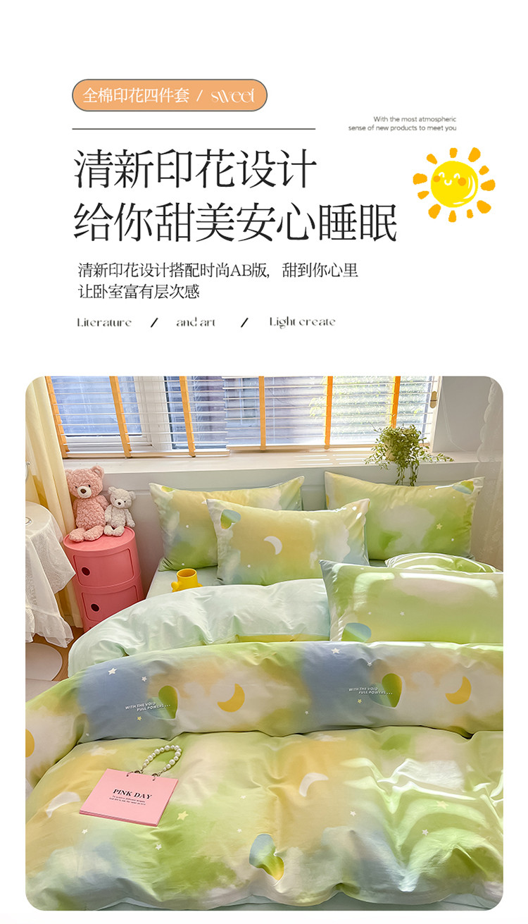 蓝邻 2023新款全棉印花小清新系列四件套 七彩云