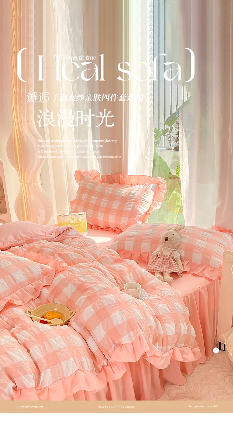 (总)梦之岛 2023新款韩版无印风泡泡纱四件套