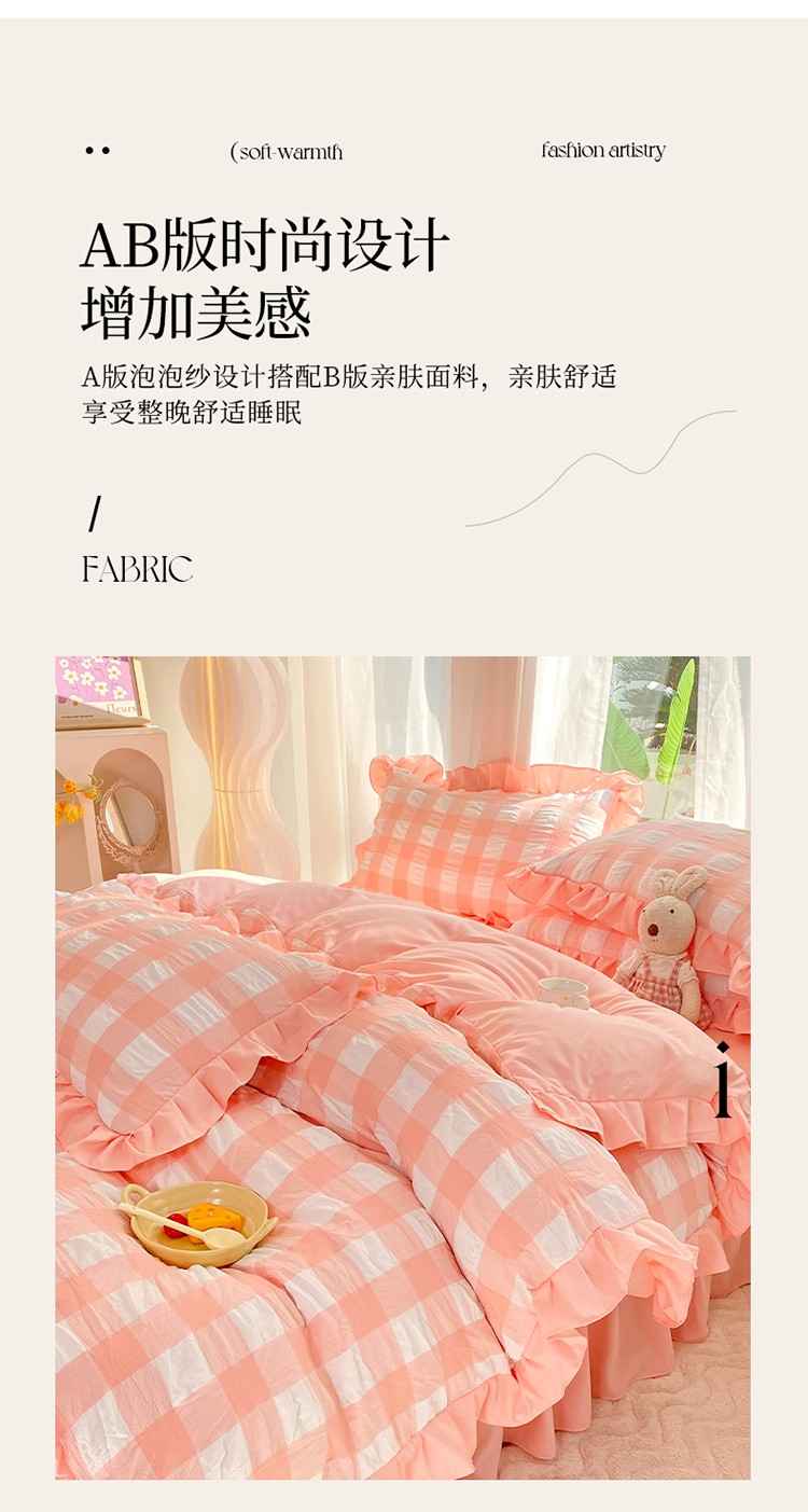 (总)梦之岛 2022新款泡泡亲肤公主风夏被四件套,淡黄绿,蜜桃粉,奶油黄,浅水绿,天空蓝