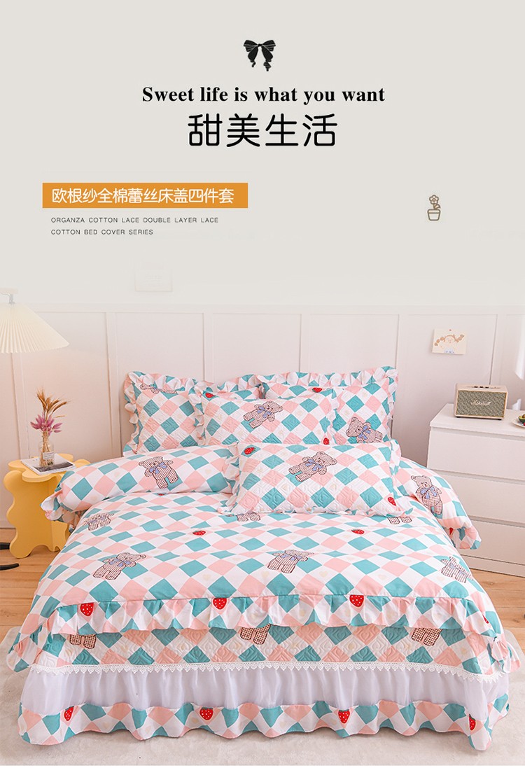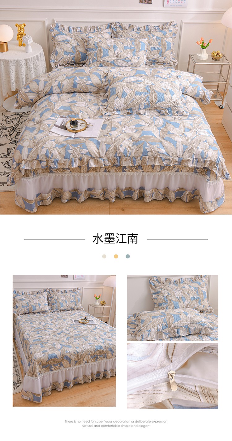 当前位置: 91家纺网 > 商品网购 > 床品套件 > 四件套 > 全棉普通四件套 > 2023公主风全棉花边床盖四件套 欧根纱床盖款夹棉纯棉三件套直播推荐 水墨江南