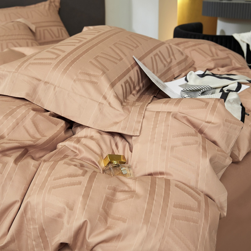 (总)安莱生活 2025春夏新款空气层色织提花四件套费尔岛系列,费尔岛-茶棕,费尔岛-咖啡,费尔岛-银灰