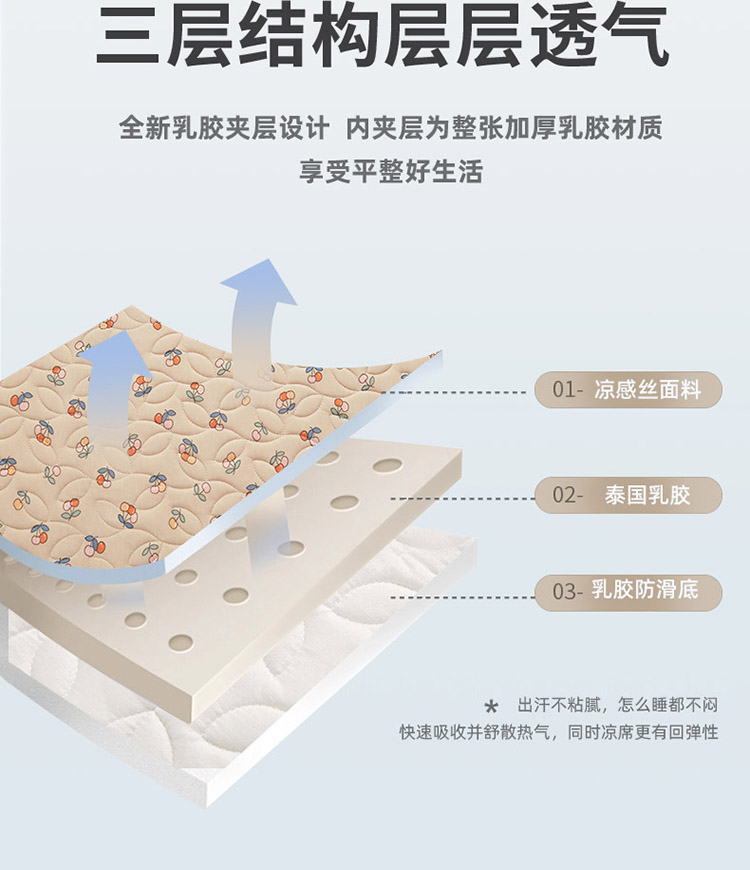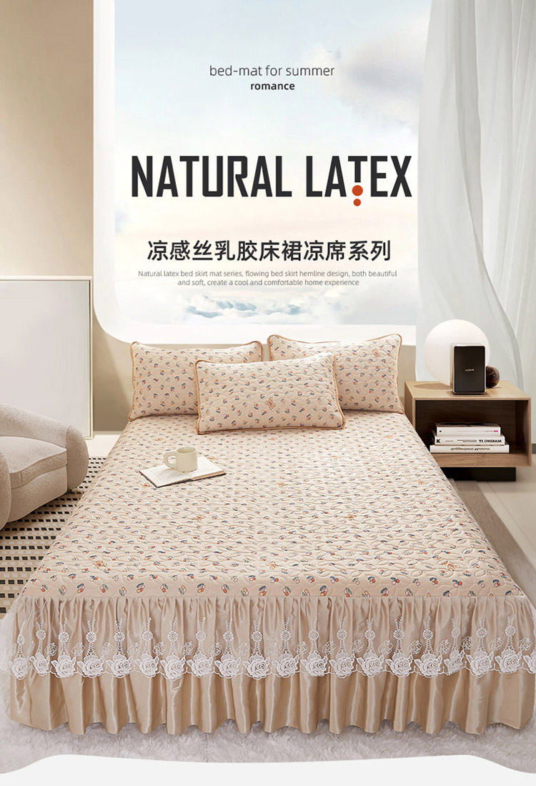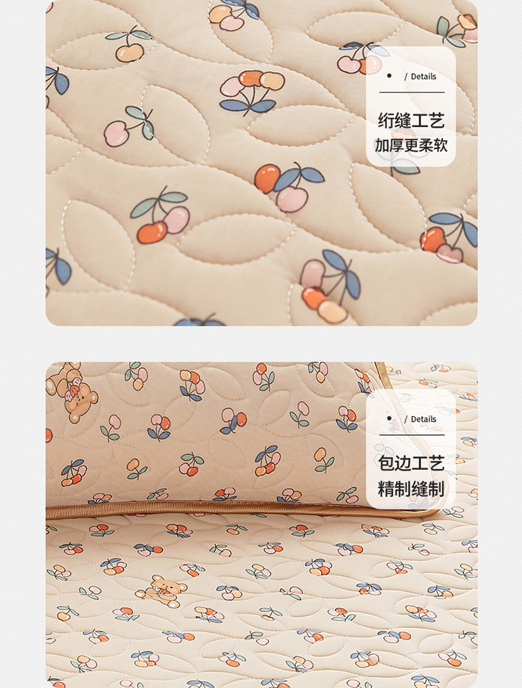 恋尚 2023新款加厚夹棉床裙款0.5乳胶凉席三件套 甜甜樱桃