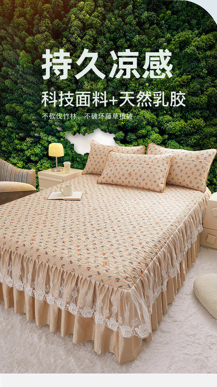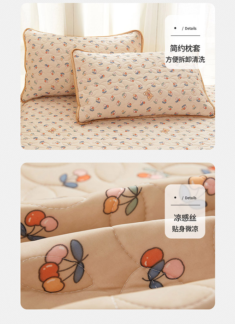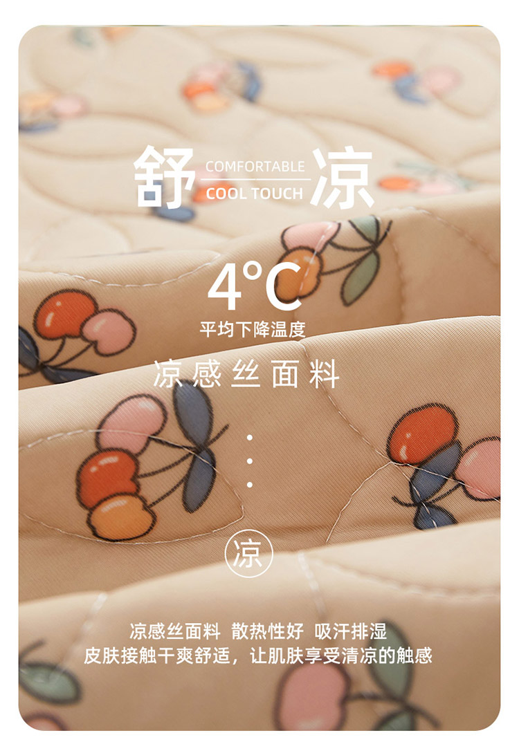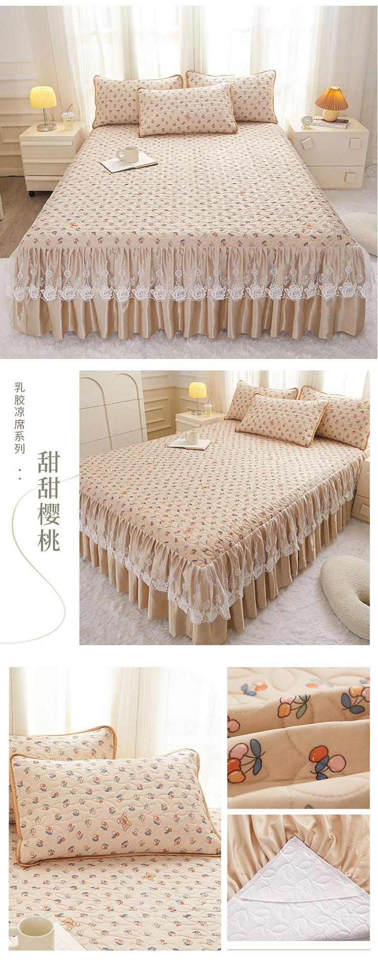商品名称:恋尚 2023新款加厚夹棉床裙款0.5乳胶凉席三件套 甜甜樱桃