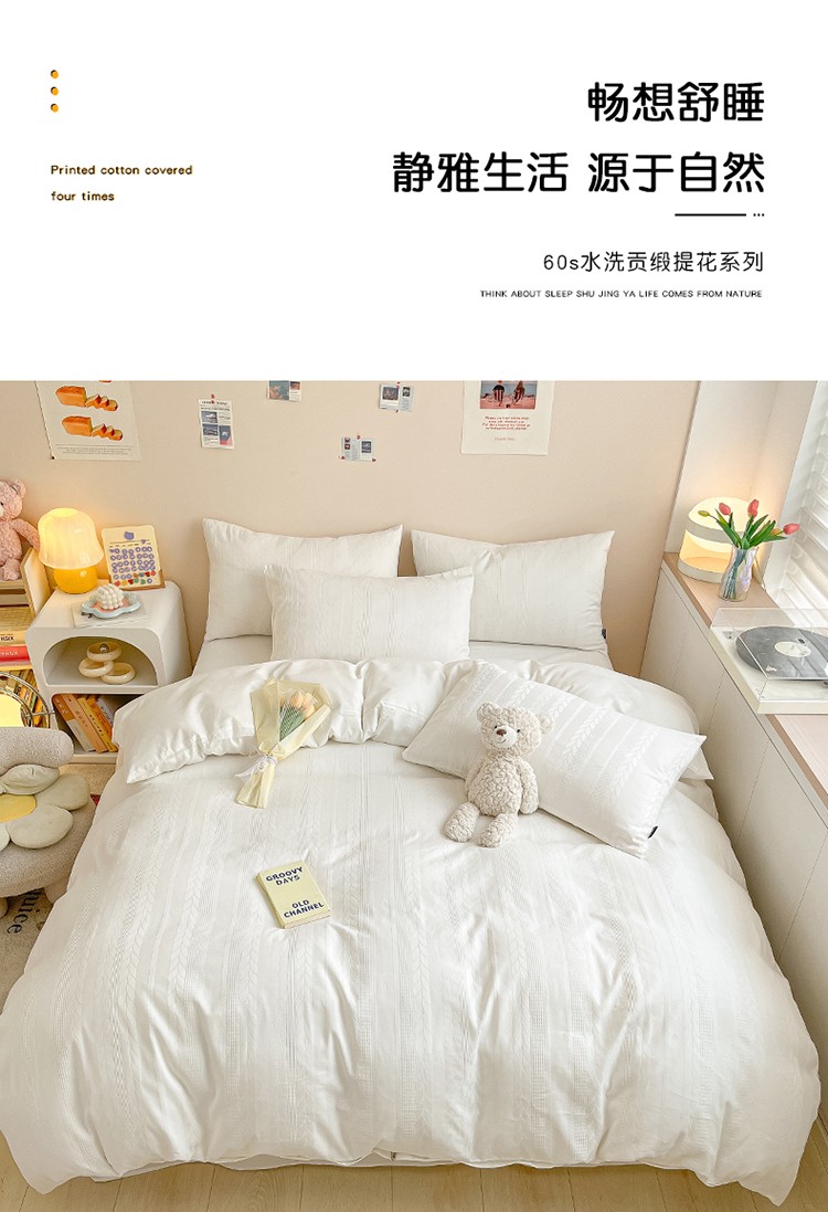 商品名称:静家居 202460s贡缎提花四件套 大麦-荣耀白
