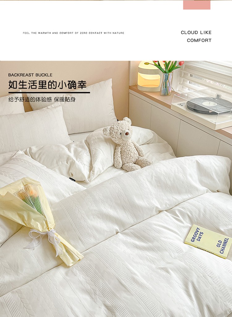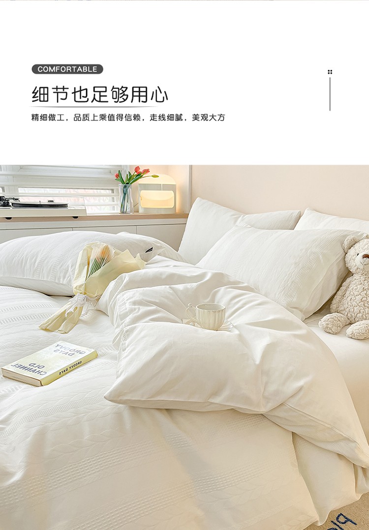 (总)静家居-简约原创家纺 四季款三层纱本色加厚提花四件套,本色-海盐蓝,本色-灰,本色-米咖,本色-松弛粉