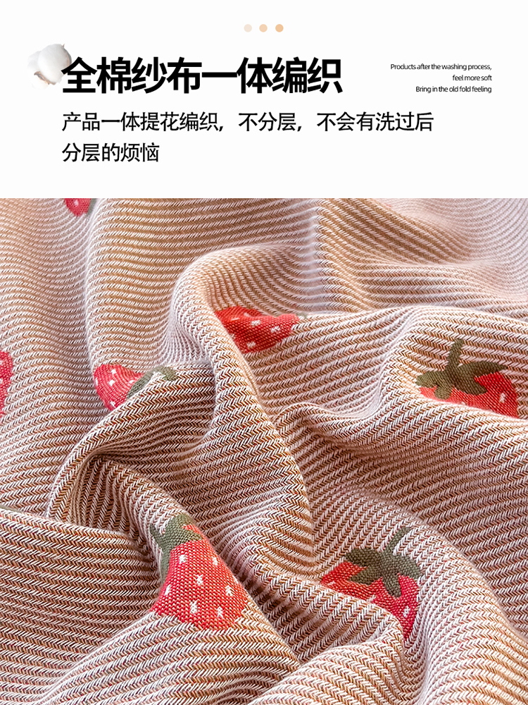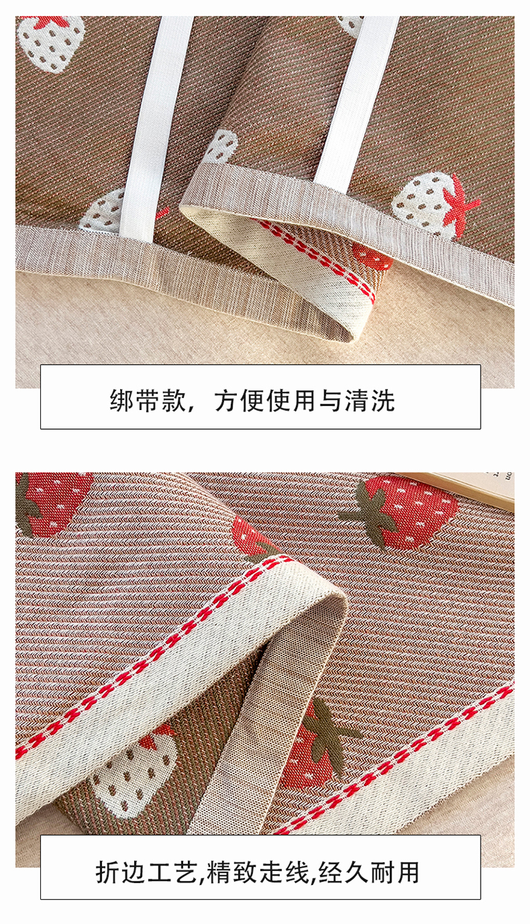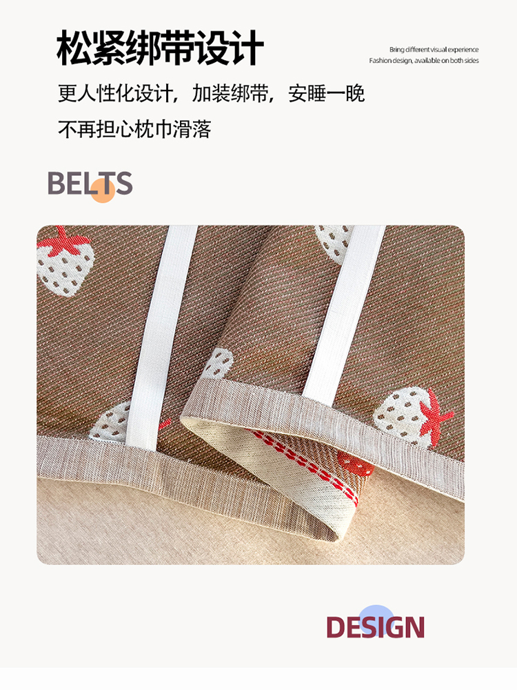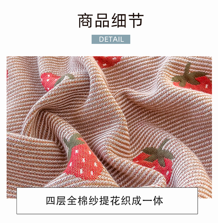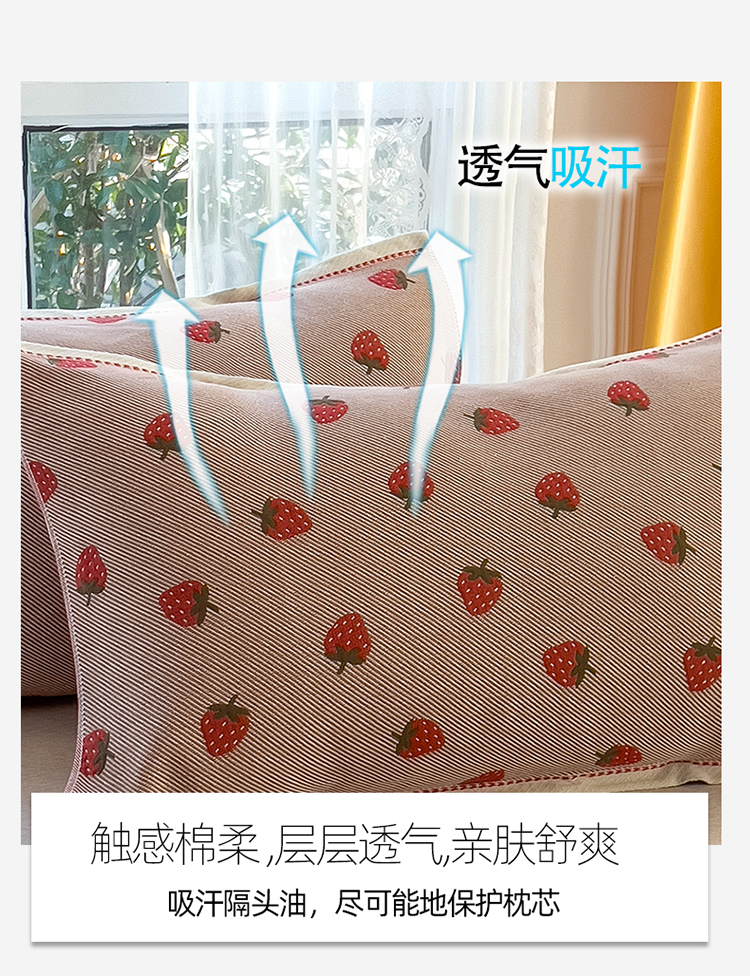 • 91家纺网 家纺一手货源 找家纺 棠薇全棉四层斜纹编织一体不分层松紧绑带枕巾纯棉枕头巾一对 甜心草莓有绑带款