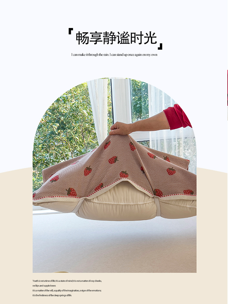 当前位置: 91家纺网 > 商品网购 > 床上用品 > 枕巾 > 棠薇全棉四层斜纹编织一体不分层松紧绑带枕巾纯棉枕头巾一对 甜心草莓有绑带款