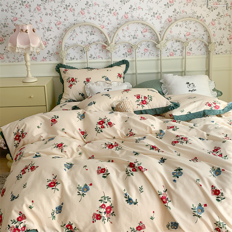 昔可家纺 2023新款全棉四件套公主蕾丝花边ok 古着复古花