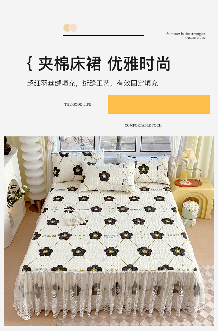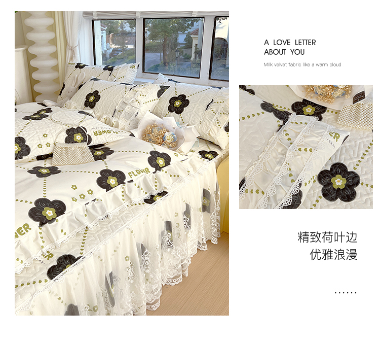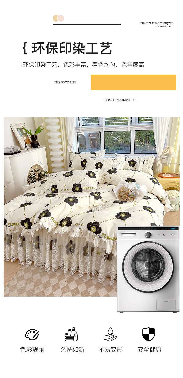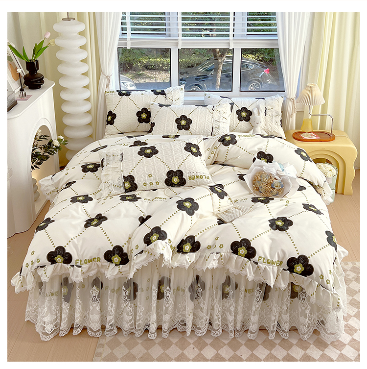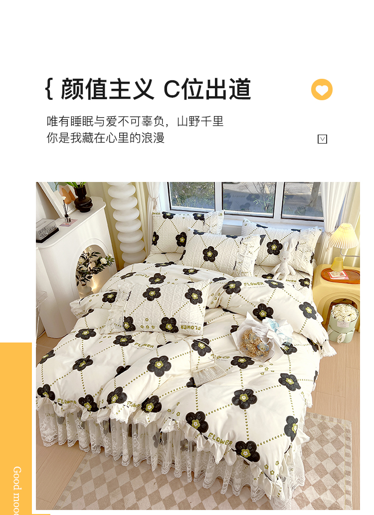 当前位置: 91家纺网 > 商品网购 > 床品套件 > 四件套 > 化纤普通四件套 > 罗艺轩 2024新款法式风蕾丝夹棉床裙款四件套 花想容-花漾青春