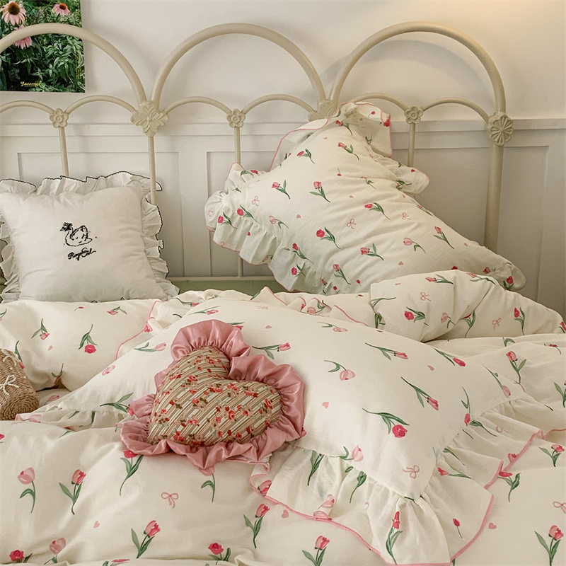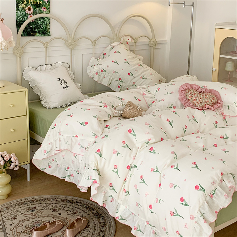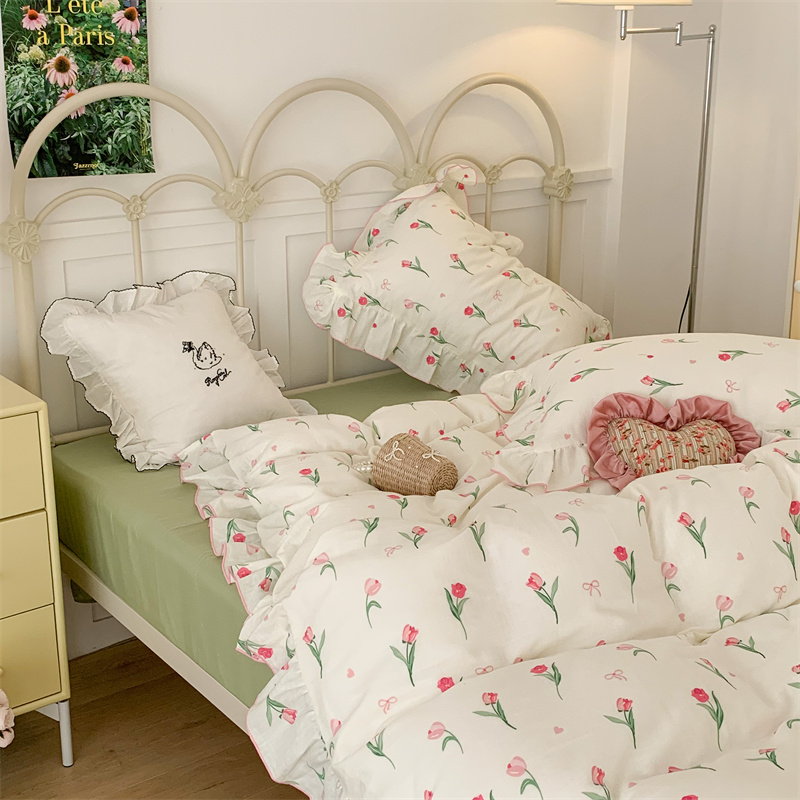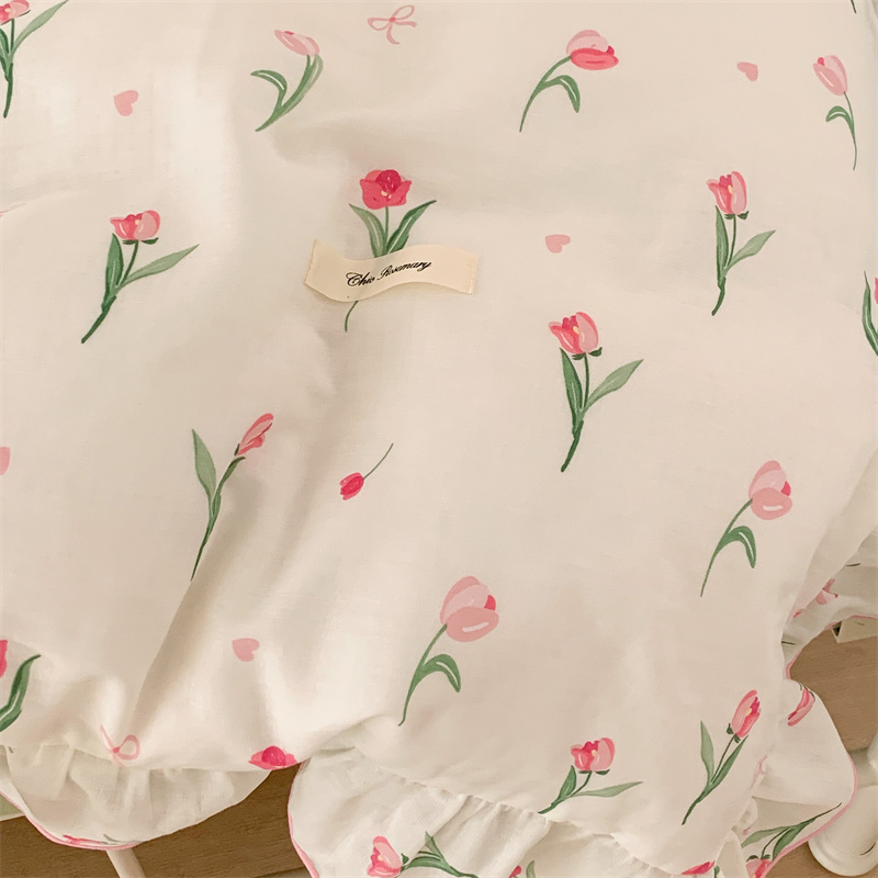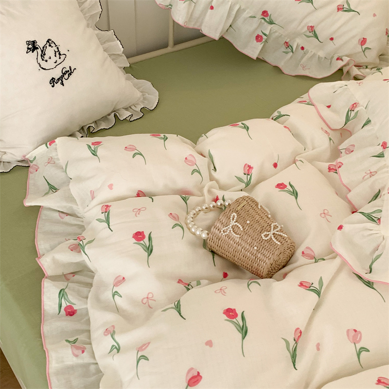 昔可家纺 2023新款花边双层纱系列ok 少女蝴蝶结郁金香