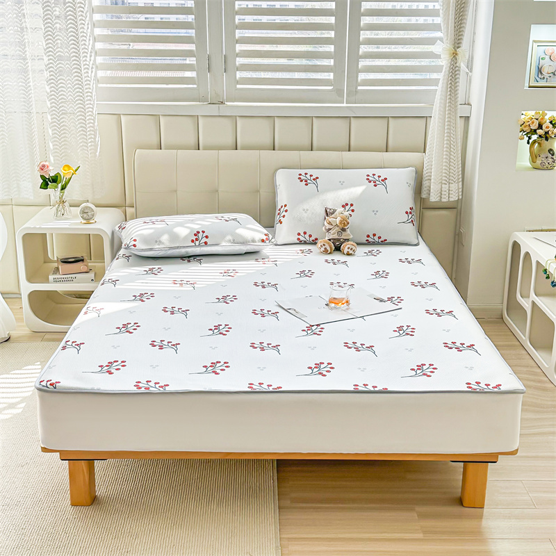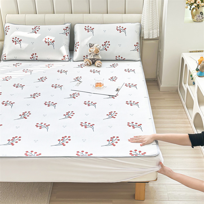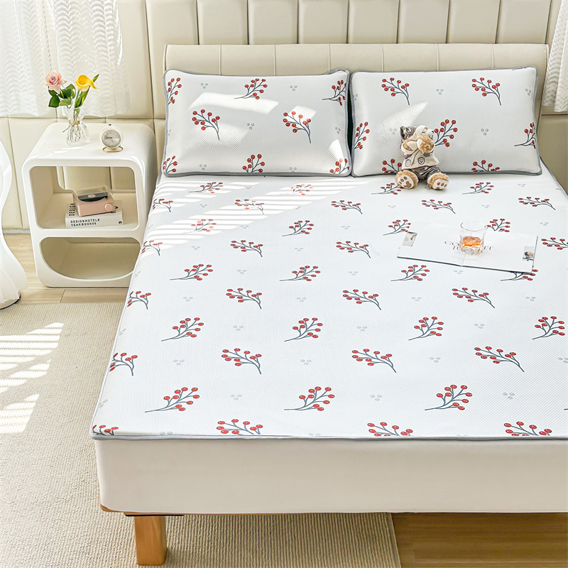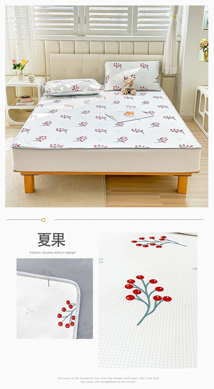 商品名称:宅部落 2023新款凉感牛奶丝满天星提花印花凉席三件套 夏果