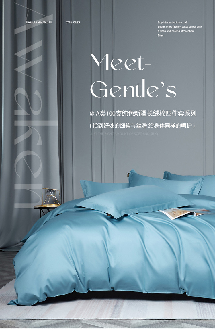 当前位置: 91家纺网 > 商品网购 > 床品套件 > 四件套 > 长绒棉四件套 > 莱阁亿 2023新款高支高密纯色新疆长绒棉四件套 茗翠蓝