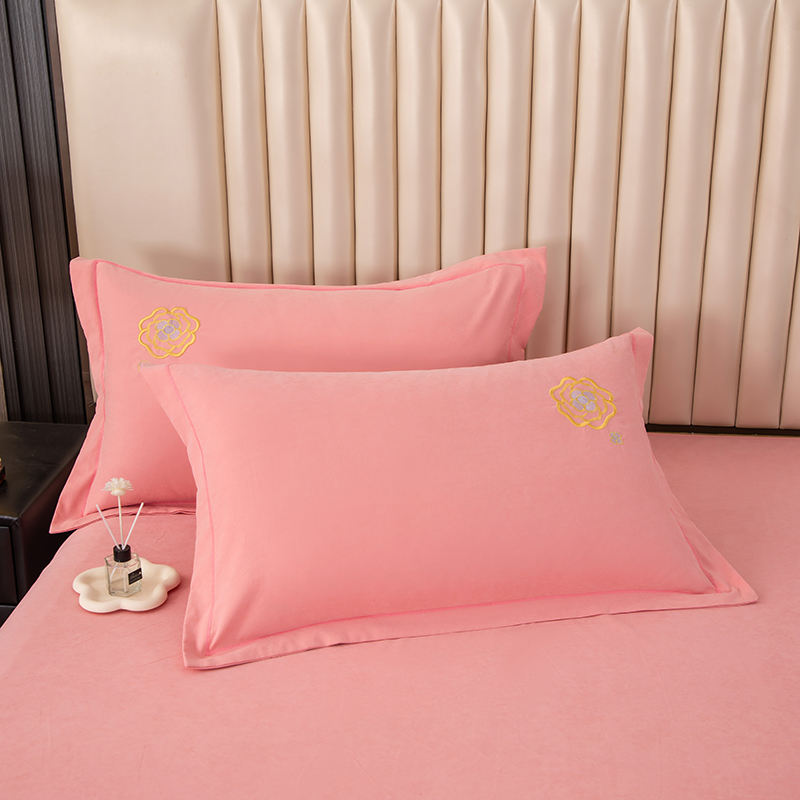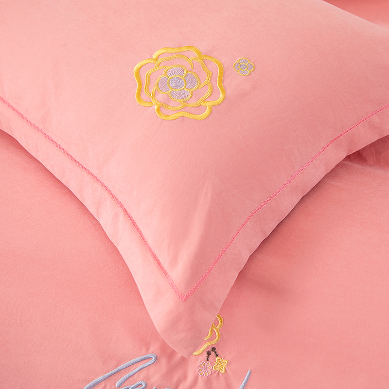 优姿家纺 2024新款锦棉绣花四件套吊边床单一字绣枕套套件-雅韵 雅韵-粉
