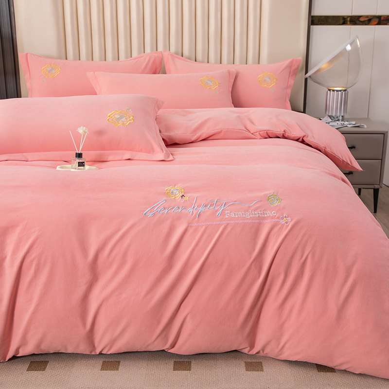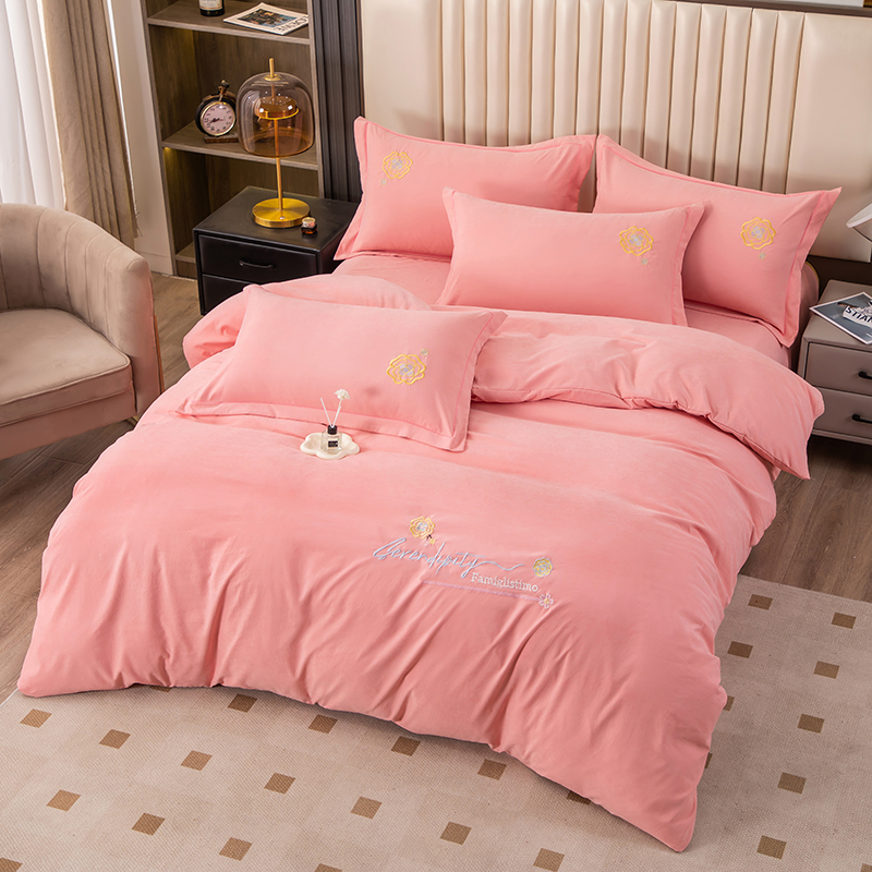 (总)优姿家纺 2025新款牛奶绒花边绣花床盖四件套,花漾时光-果绿,花漾时光-玖红色,花漾时光-米色,花漾时光-桃红色,花漾时光-天空兰,花漾时光-雾霾蓝