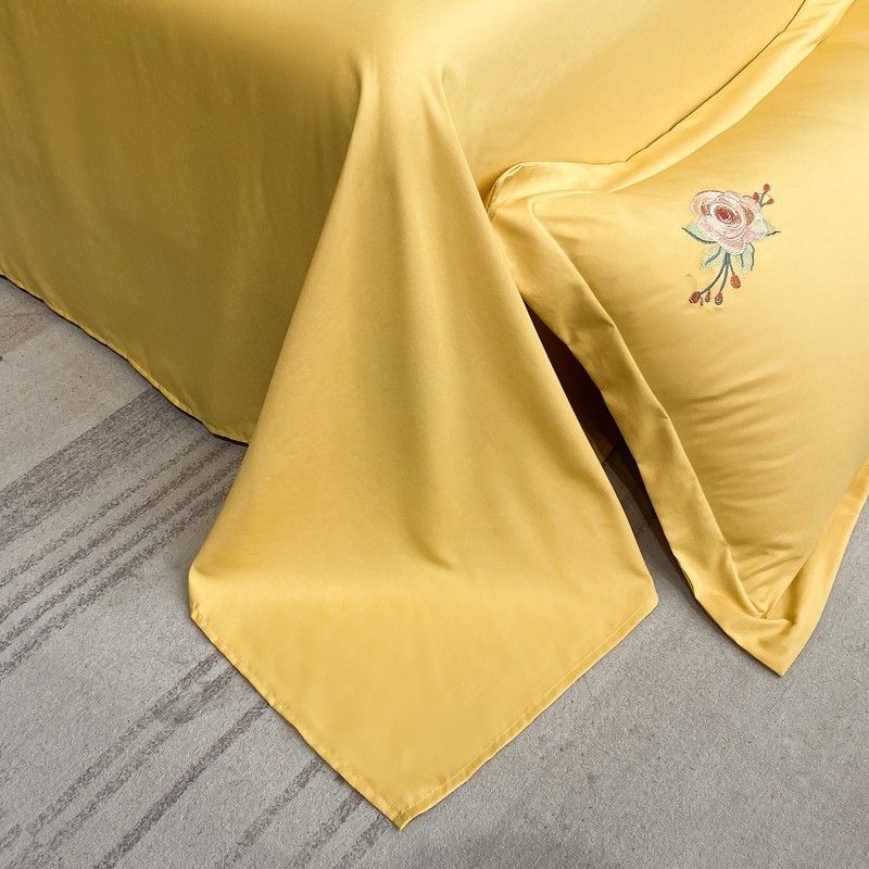 商品名称:伊人居 2024新款轻奢系列刺绣水洗真丝夏被四件套 蝶恋花-优雅黄
