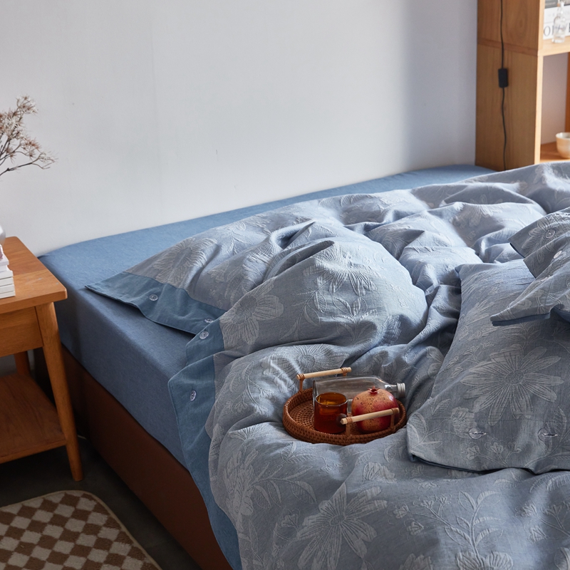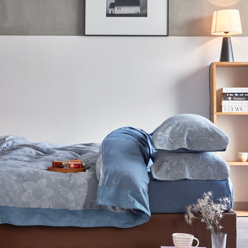当前位置: 91家纺网 > 商品网购 > 床品套件 > 四件套 > 提花四件套 > 安莱生活2023新品双层纱大提花高奢工艺款四件套馥香系列 馥香--蓝色
