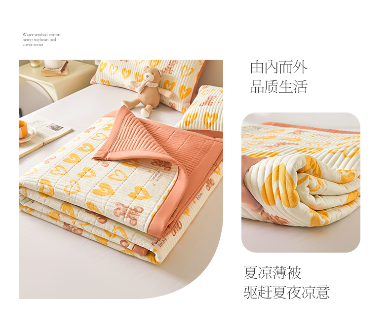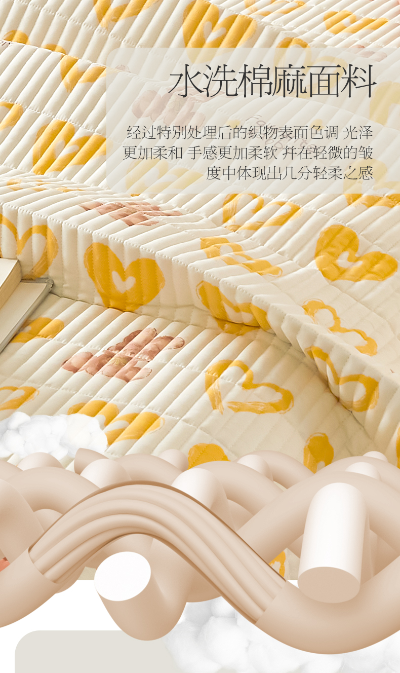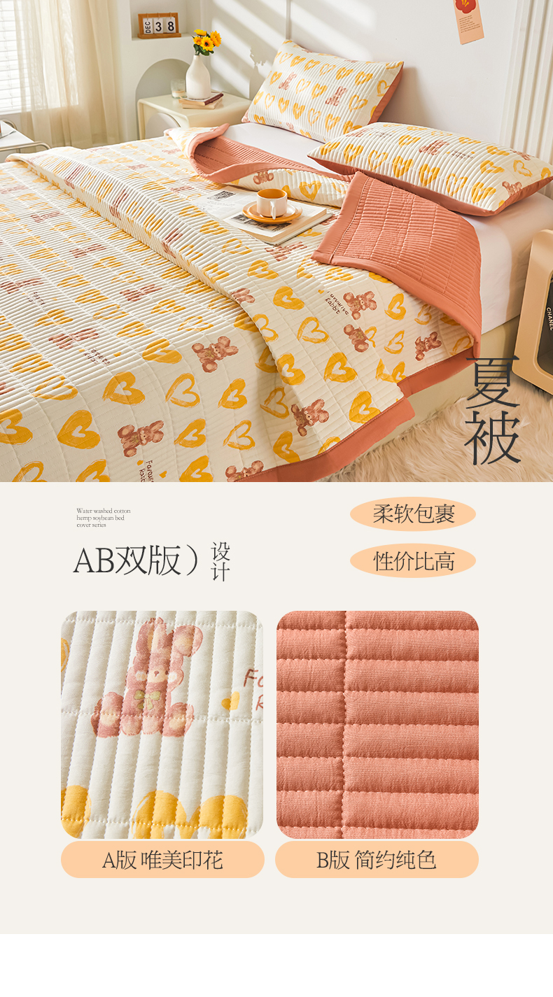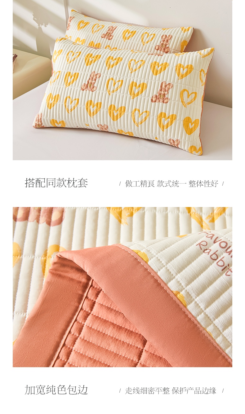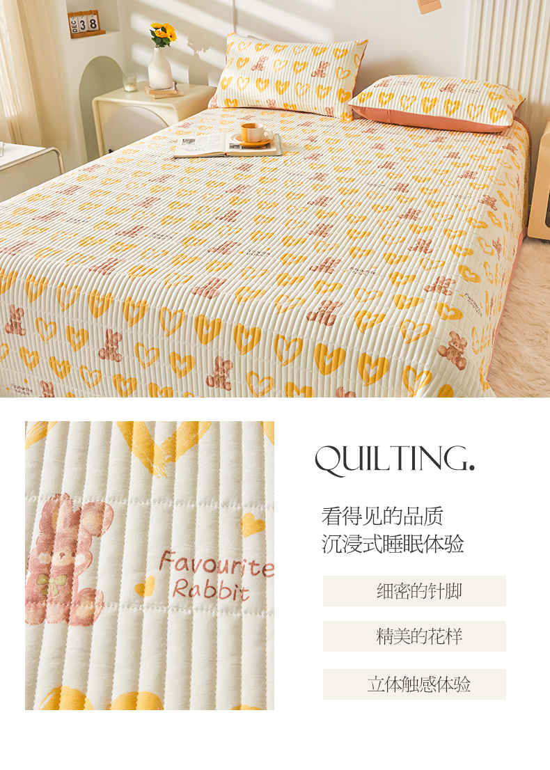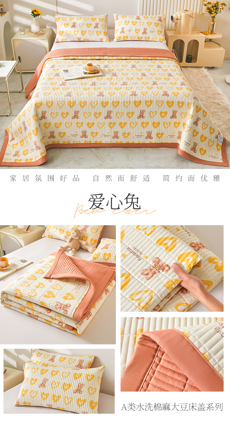 商品名称:圣比熊水洗棉麻床盖大豆纤维夹棉加厚宿舍铺盖两用床单床裙保护垫 爱心兔