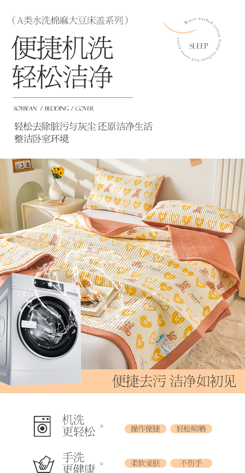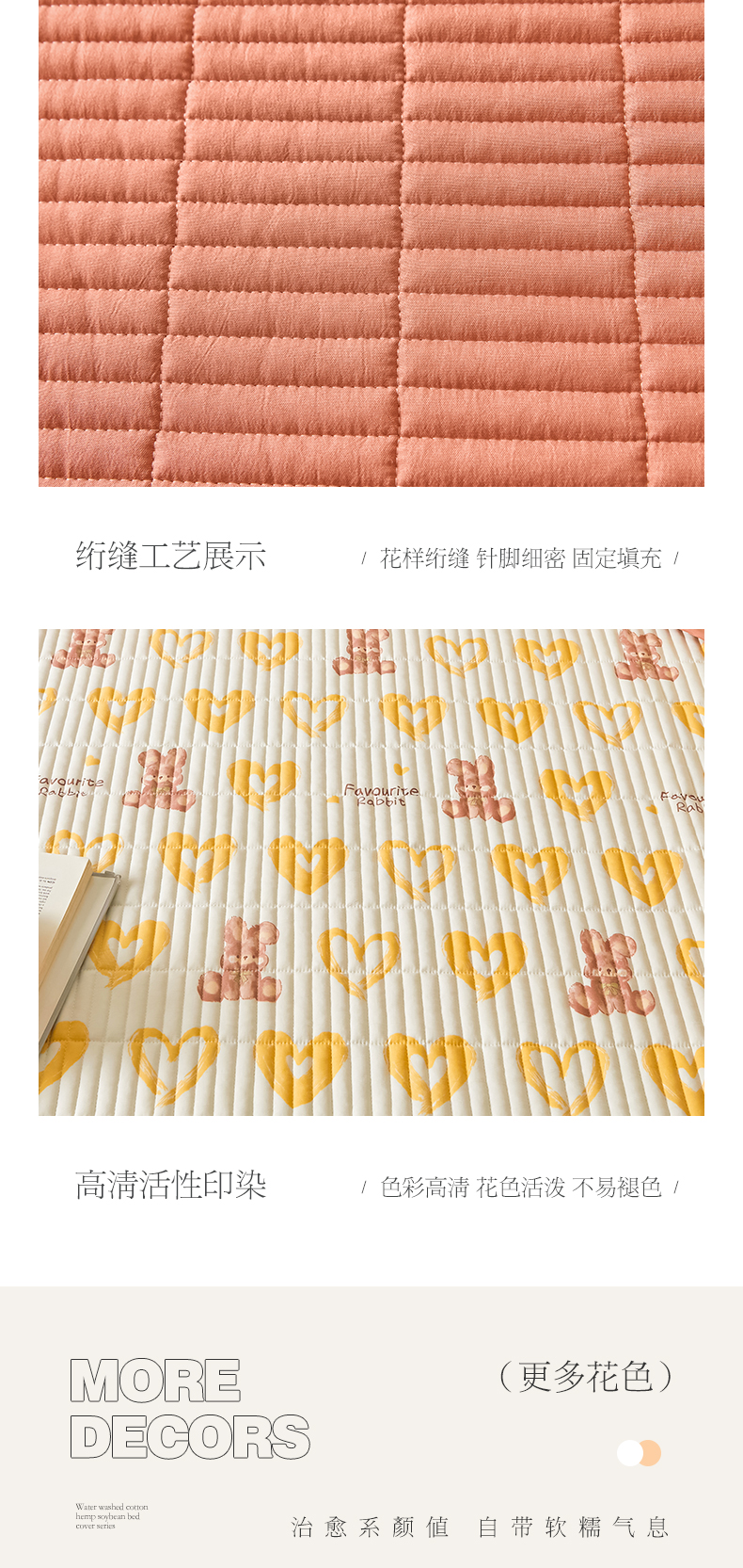 圣比熊水洗棉麻床盖大豆纤维夹棉加厚宿舍铺盖两用床单床裙保护垫 爱心兔