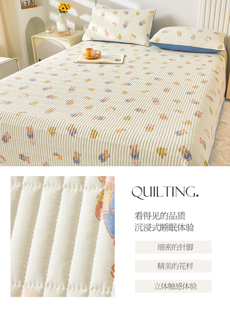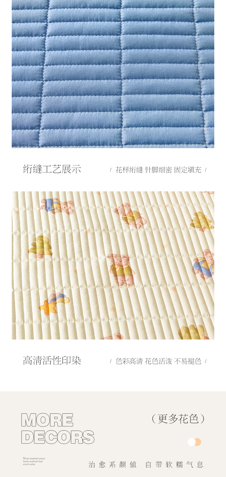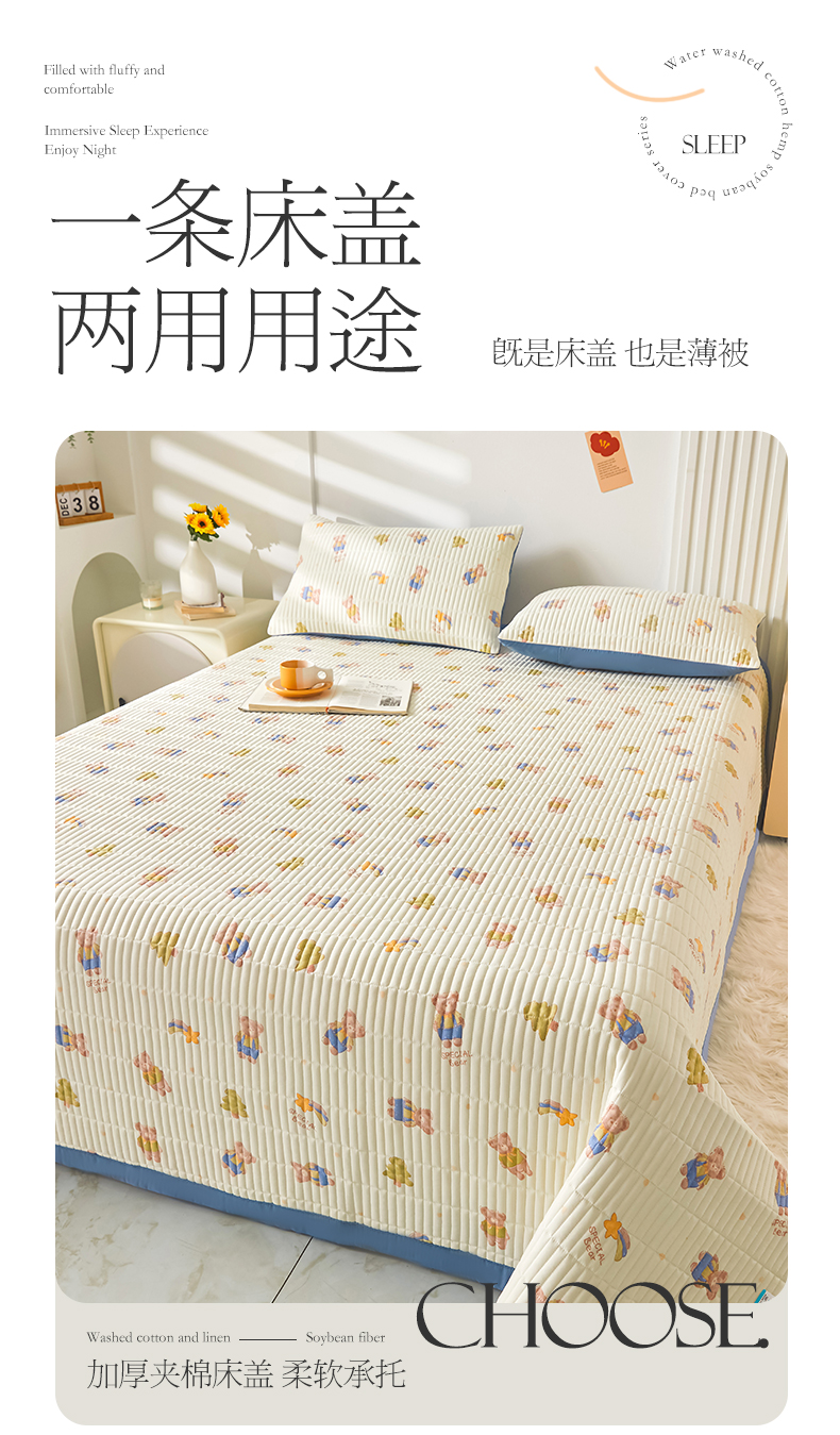 商品名称:圣比熊水洗棉麻床盖大豆纤维夹棉加厚宿舍铺盖两用床单床裙保护垫 童话乐园