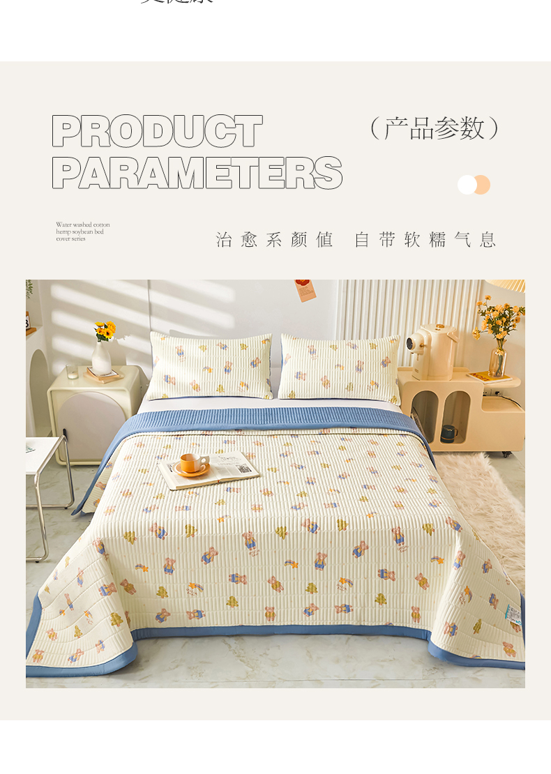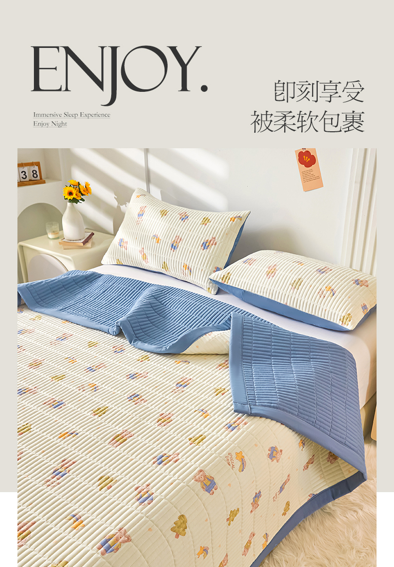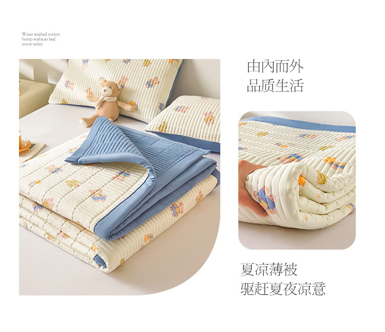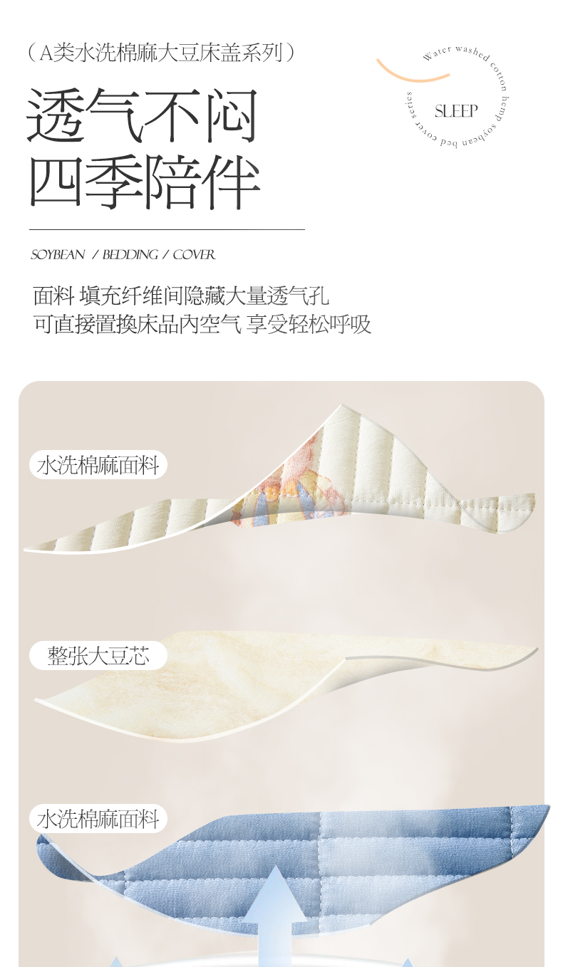 商品名称:圣比熊水洗棉麻床盖大豆纤维夹棉加厚宿舍铺盖两用床单床裙保护垫 童话乐园