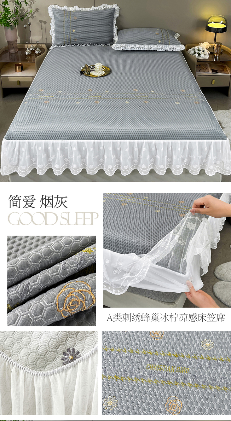 宜凡-2024新款A类蜂巢冰柠凉席床笠款三件套 简爱 烟灰