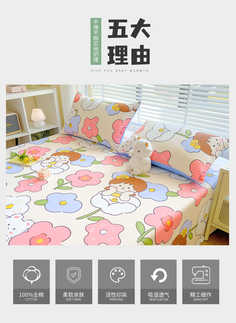 芃成家纺 2023新款全棉13070单床单 可爱女孩