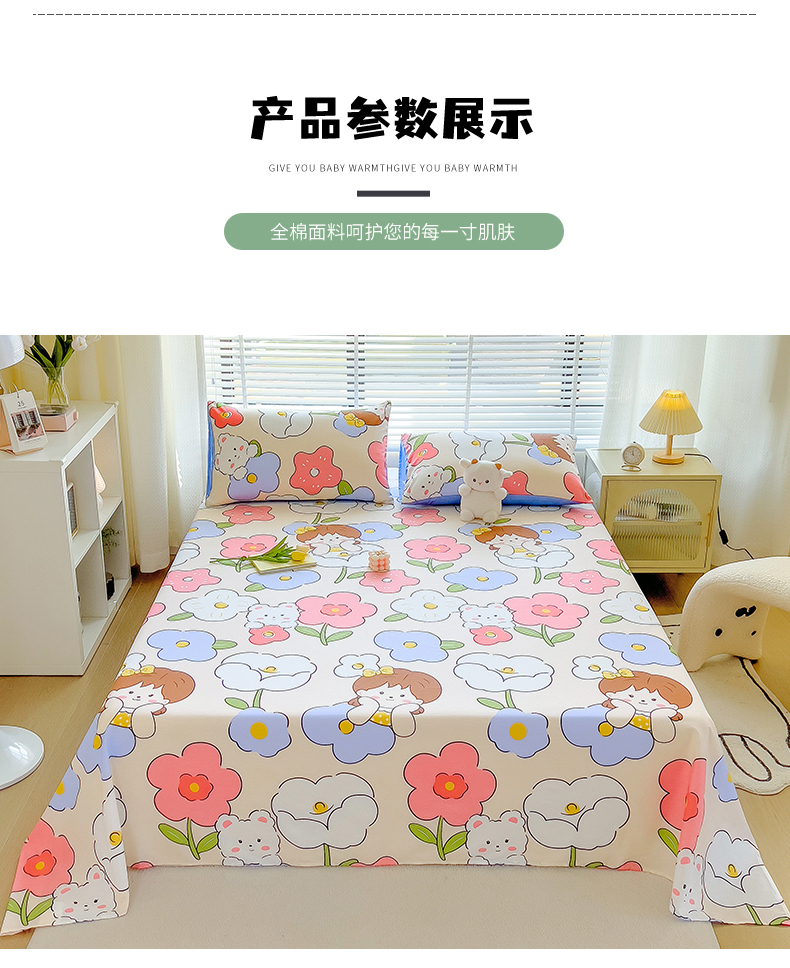 • 91家纺网 家纺一手货源 找家纺 芃成家纺 2023新款全棉13070单床单 可爱女孩