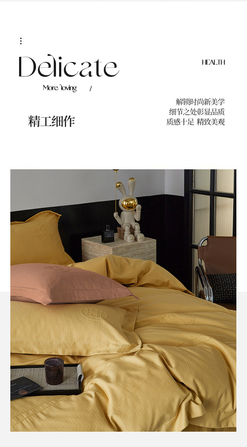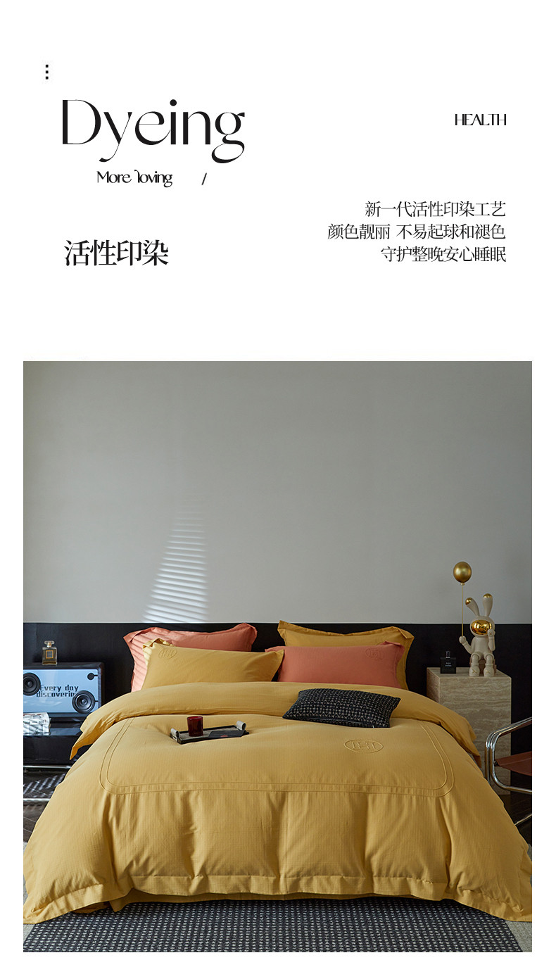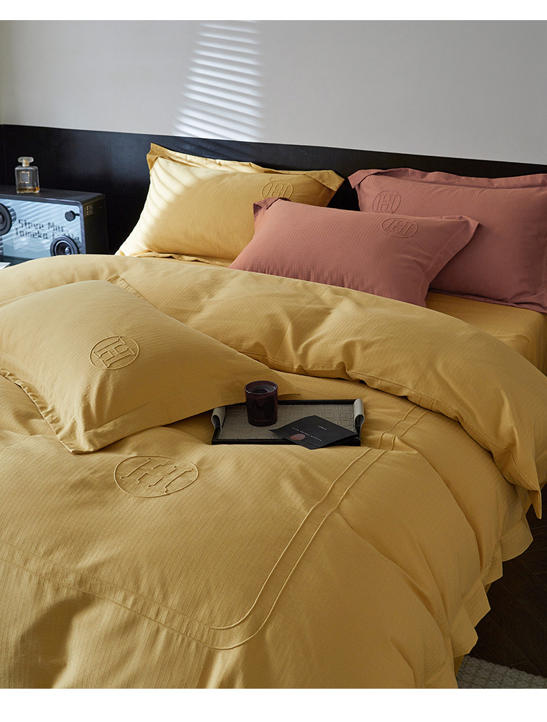 艾莱家纺 2023新款A类长绒棉水洗80提花埋线工艺款四件套艾华仕秋黄
