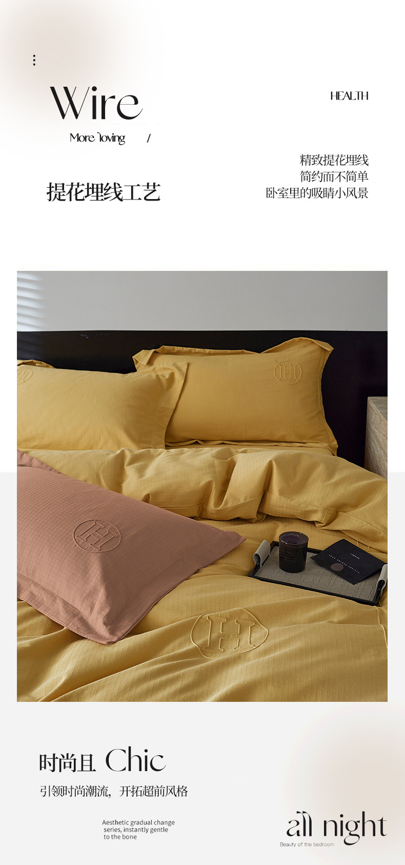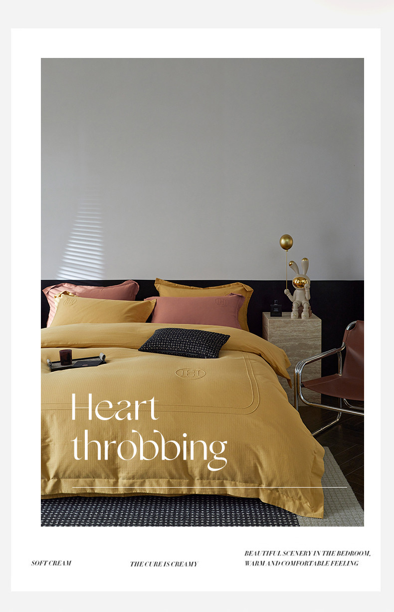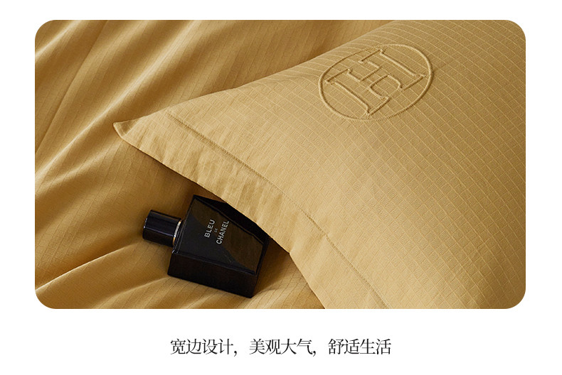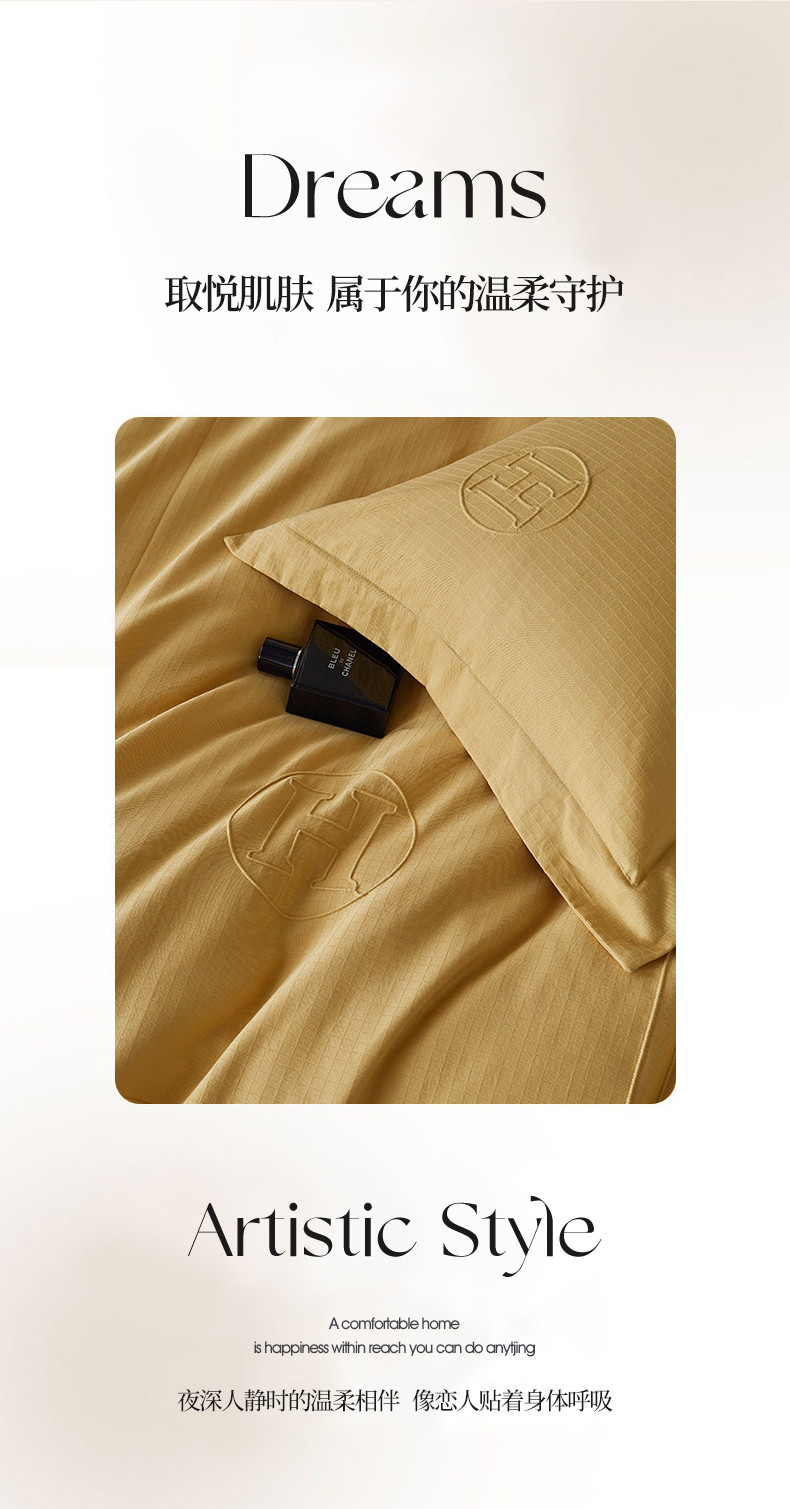 艾莱家纺 2023新款A类长绒棉水洗80提花埋线工艺款四件套艾华仕秋黄