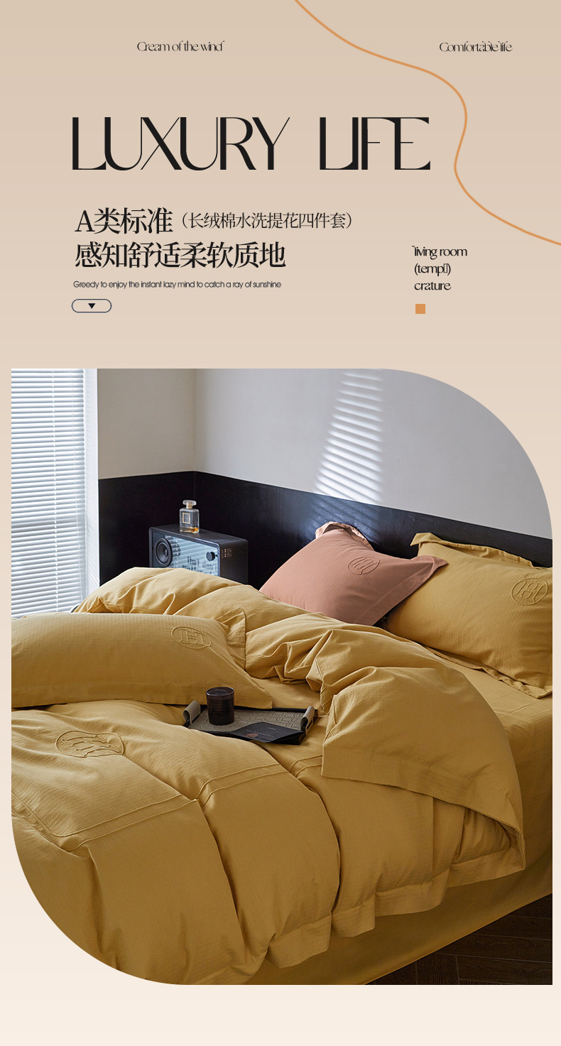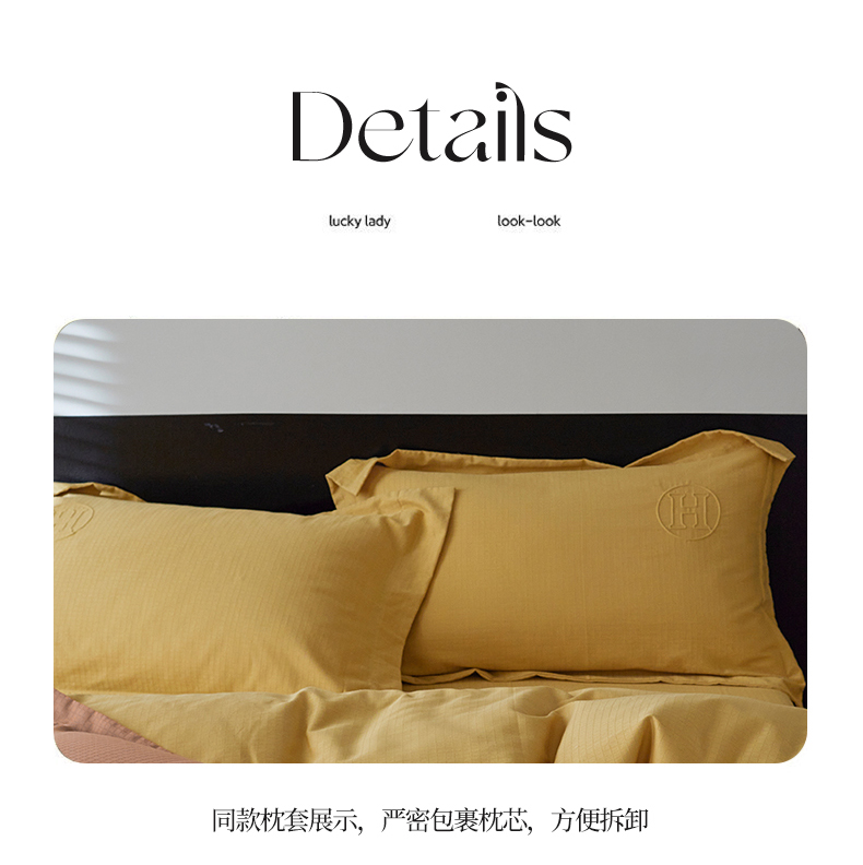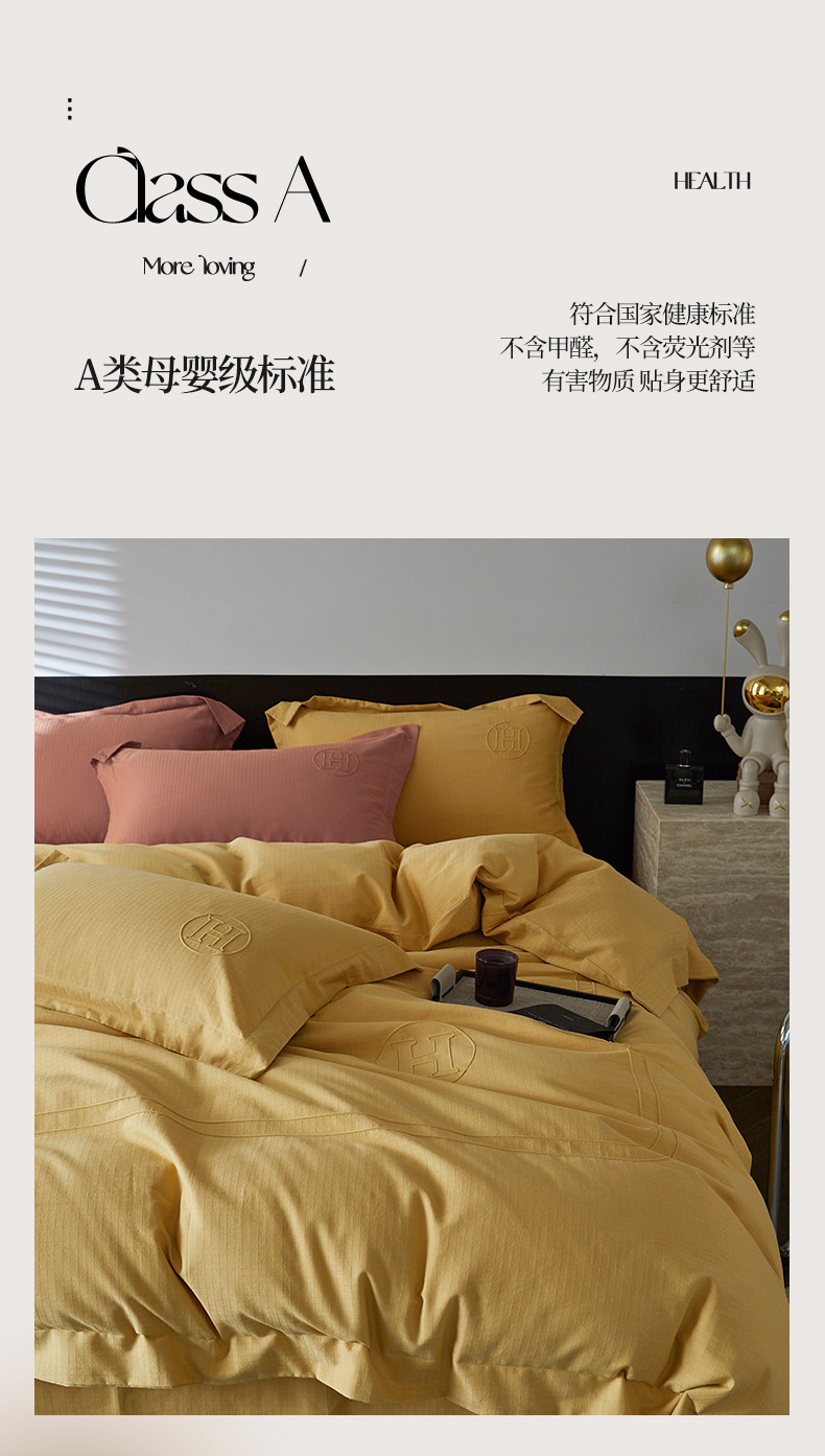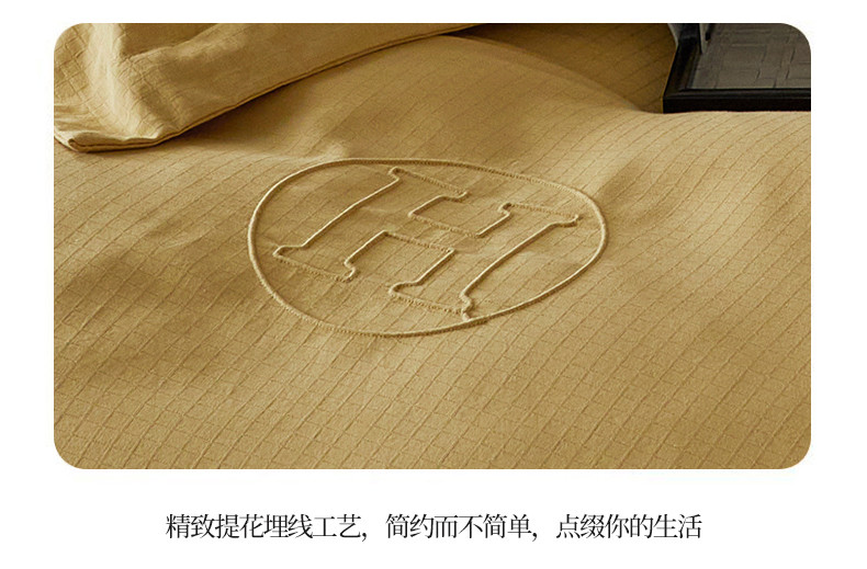 商品名称:艾莱家纺 2023新款A类长绒棉水洗80提花埋线工艺款四件套艾华仕秋黄