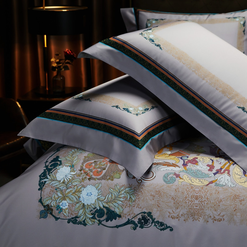 (总)缔缦 2024新款定织新布种S140系列刺绣拼角工艺四件套-威廉皇室,威廉皇室 贵族白,威廉皇室 酒红,威廉皇室 深灰