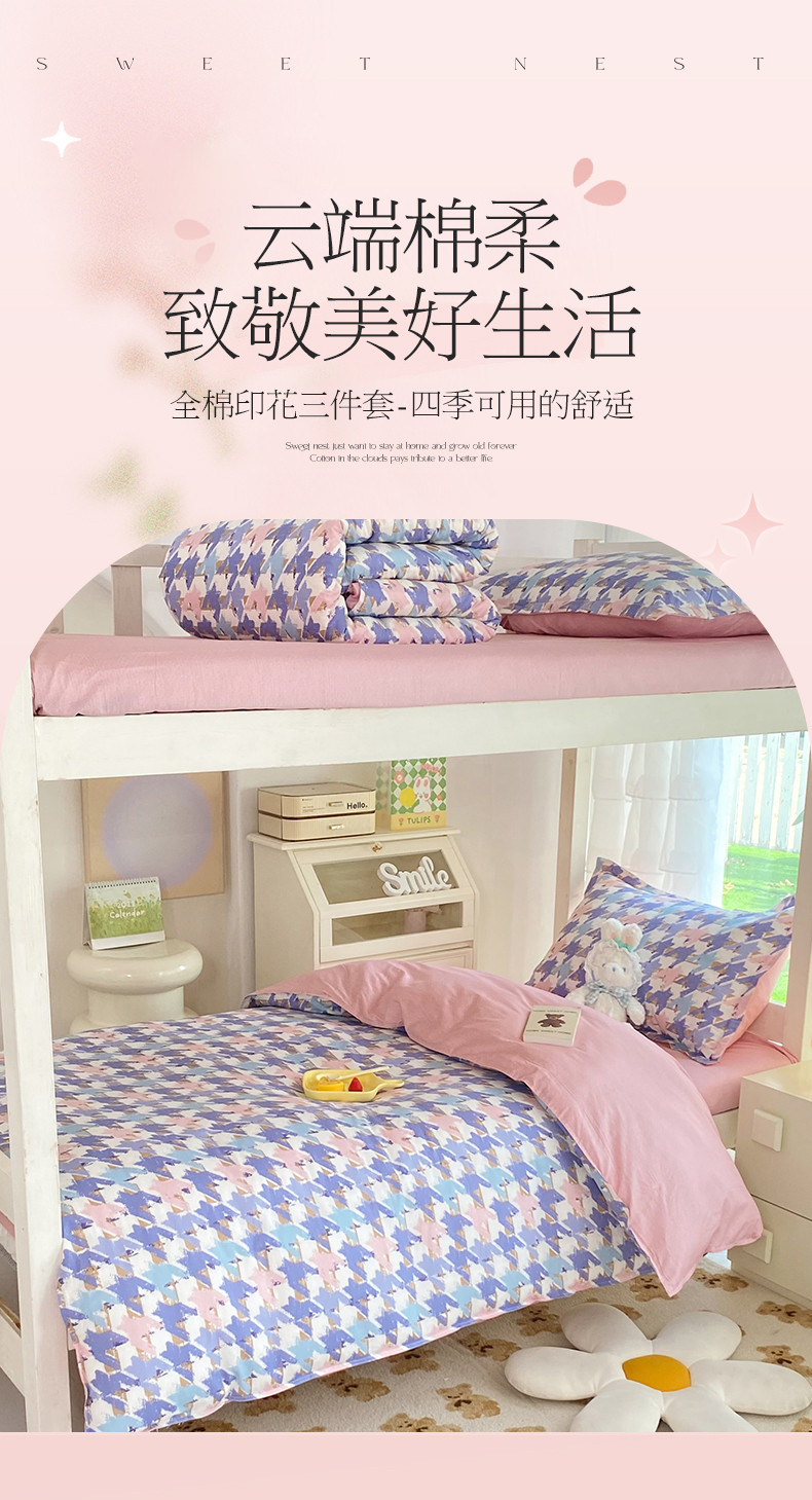 商品名称:多品 2023新款12868全棉宿舍三件套-第二批 千爱