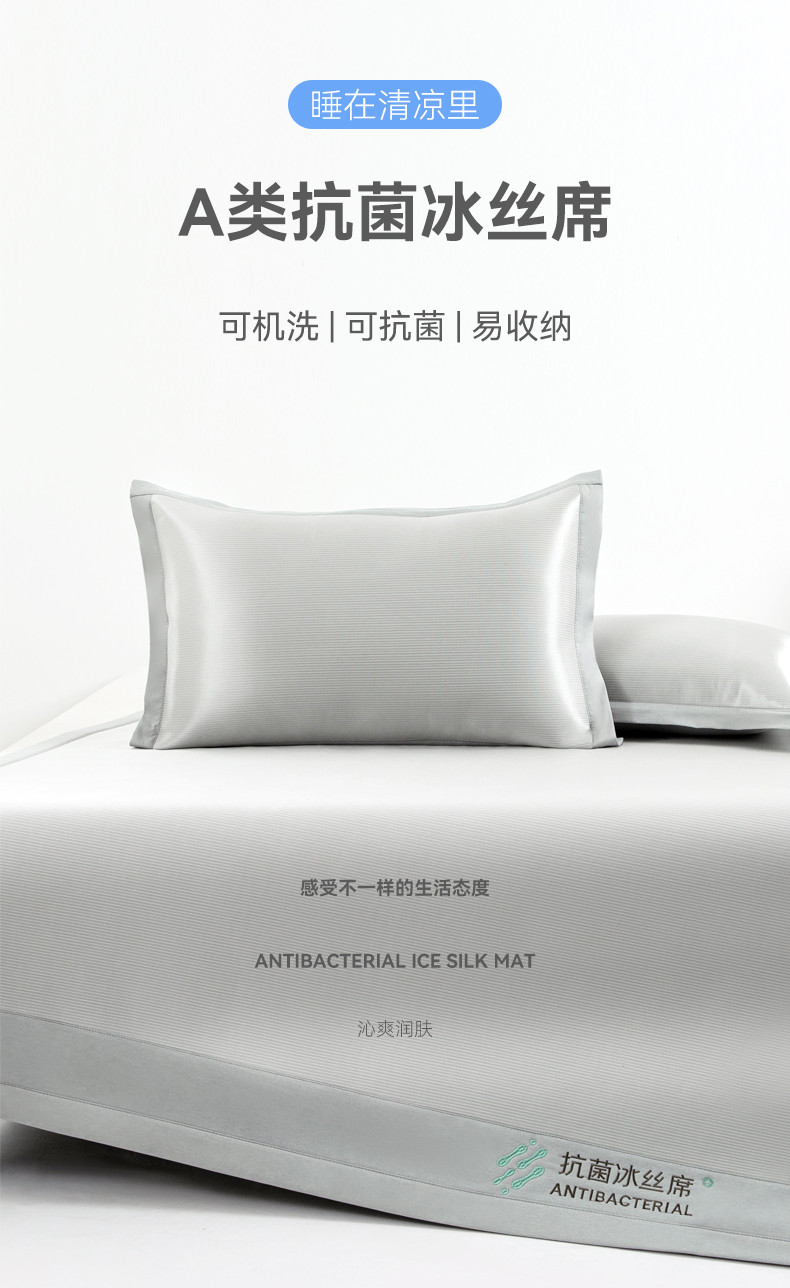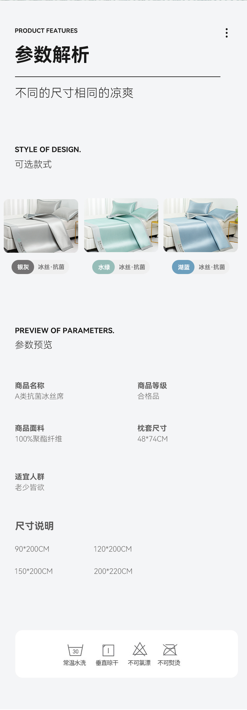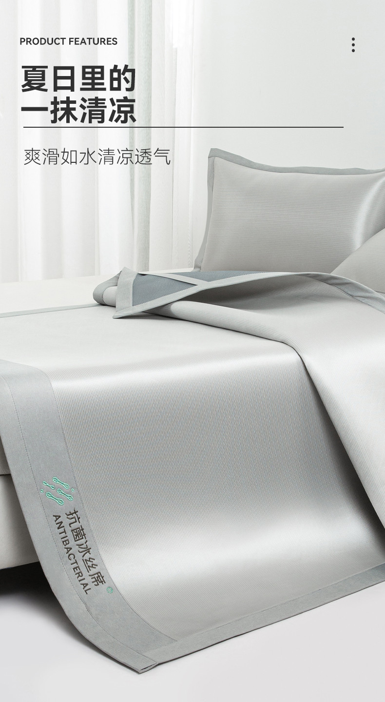 (总)春晓 2024新款A类绣花抗菌冰丝席,银灰色(条席款),湖蓝(条席款),水绿(条席款),湖蓝(床笠款),水绿(床笠款),银灰色(床笠款)